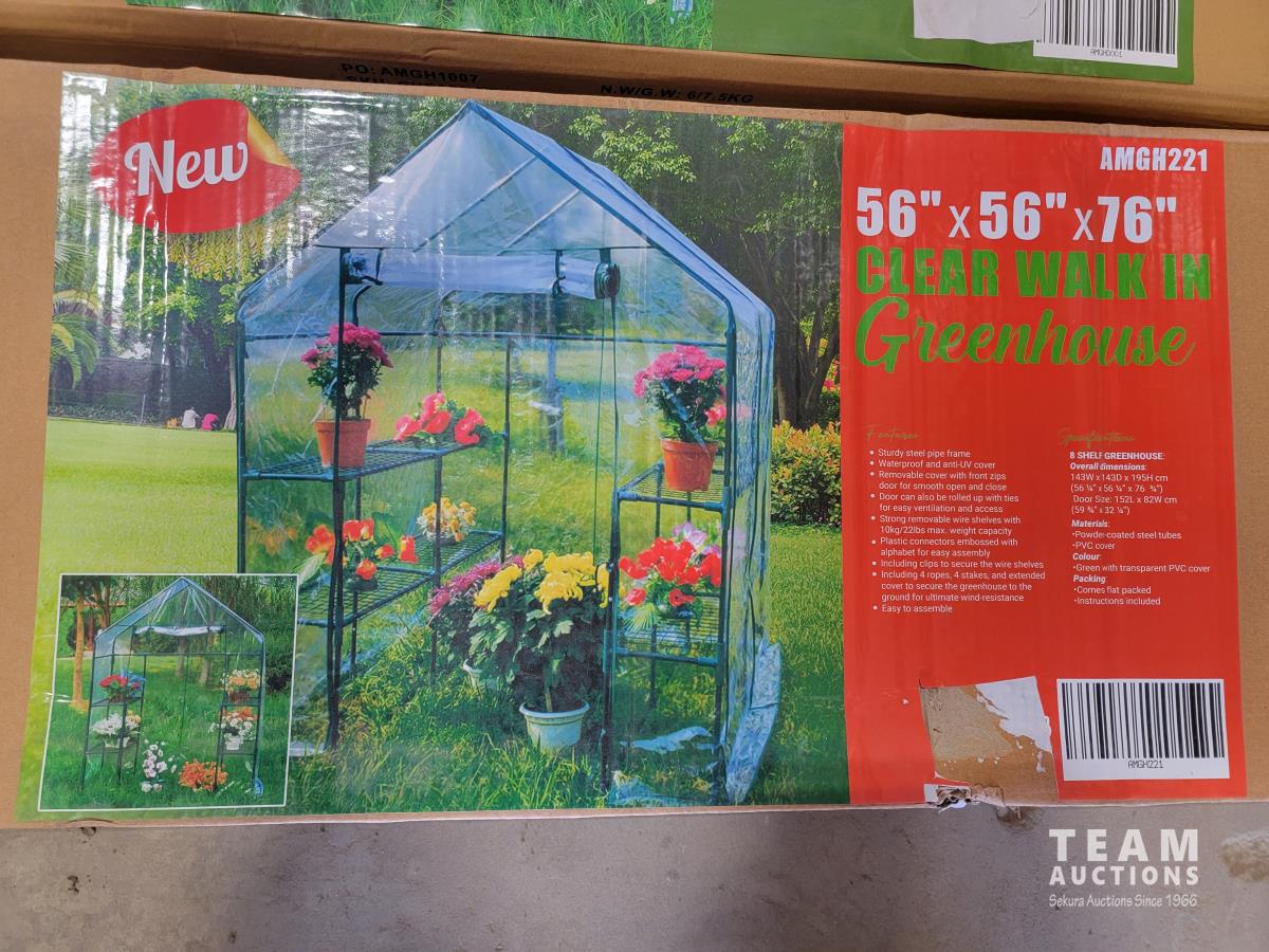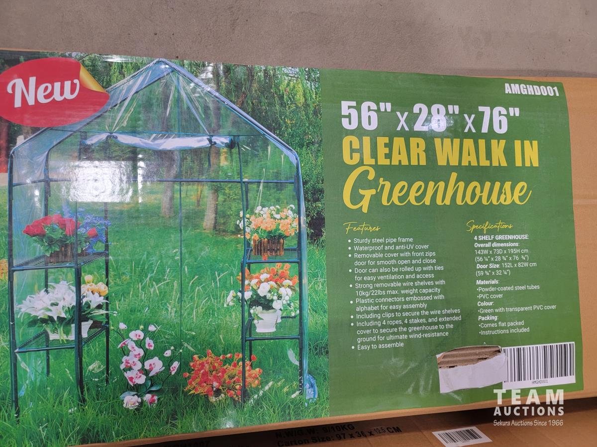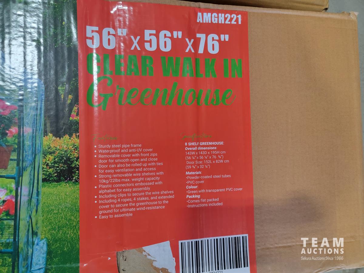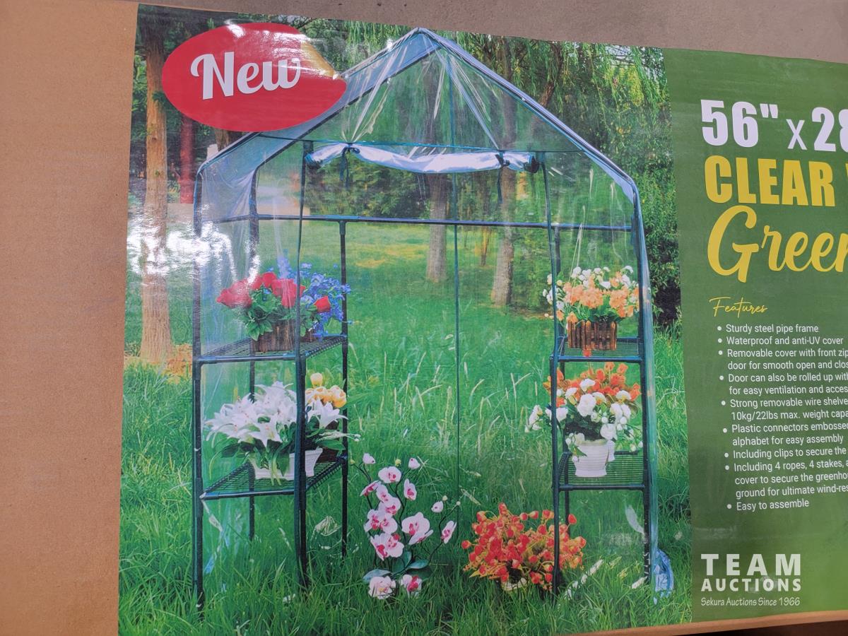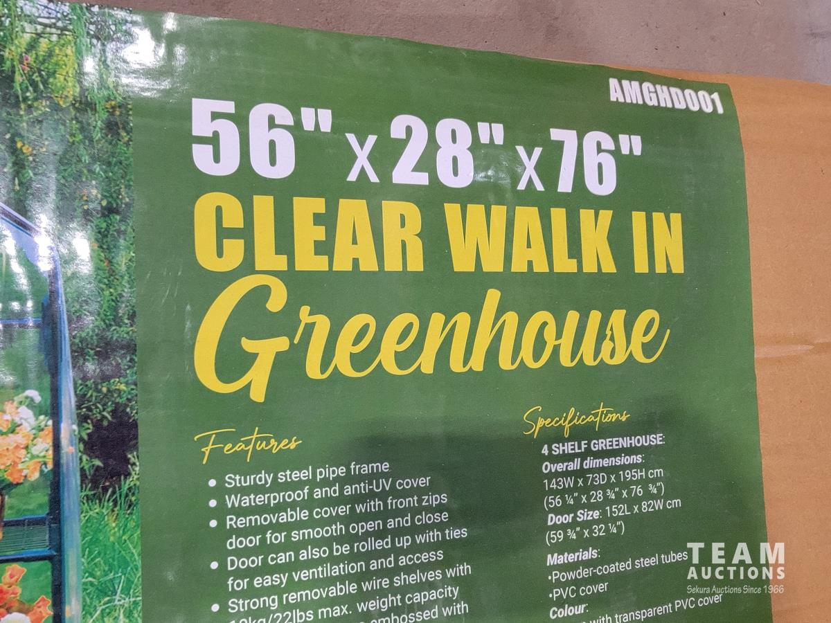 1128 (2) Walk in Clear Roll-Up Greenhouse with Shelves (Unused)