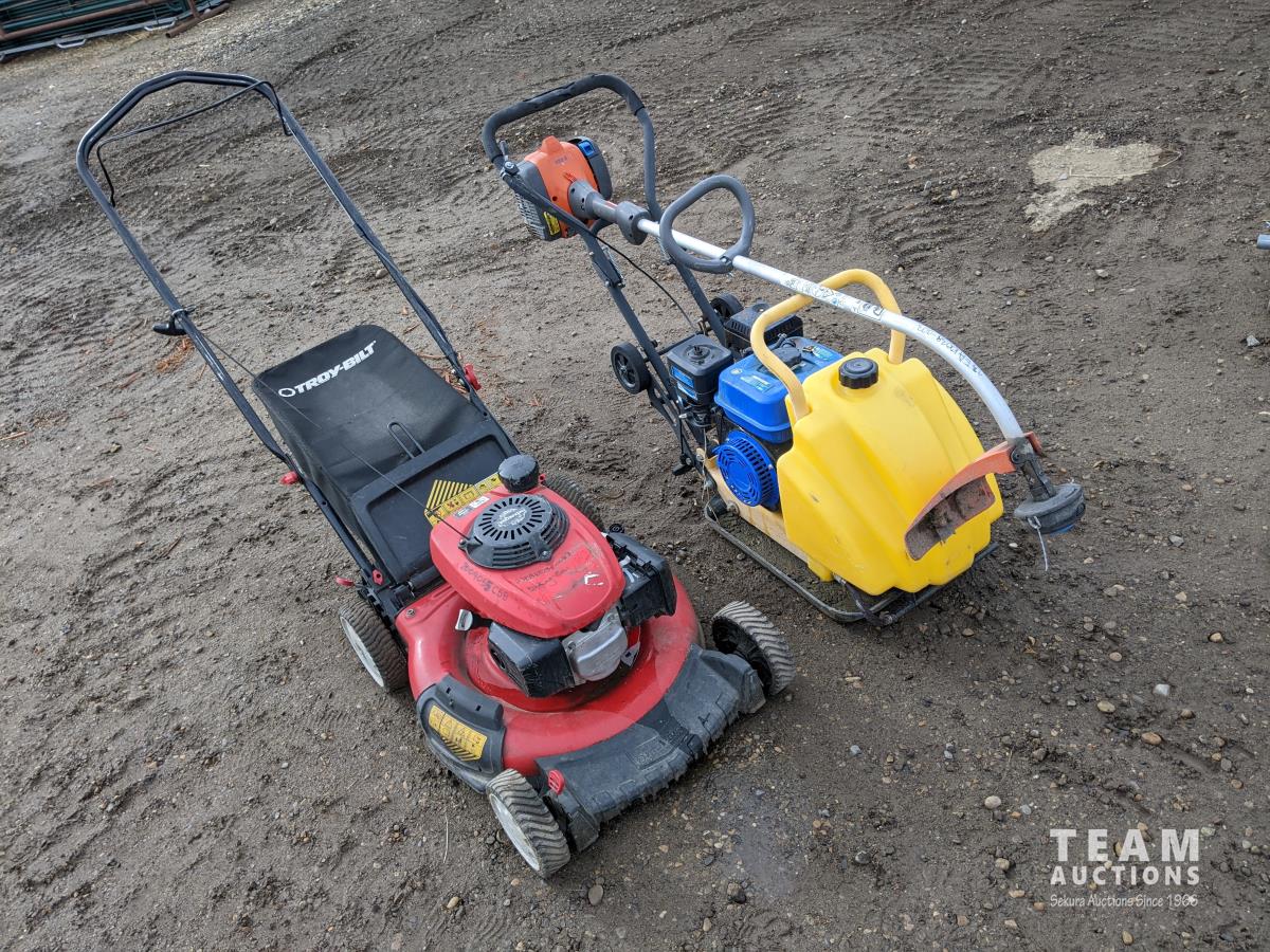 2316 20 Inch Push Mower, Husqvarna 122C Trimmer and 196 cc Plate Compactor (Inoperable)