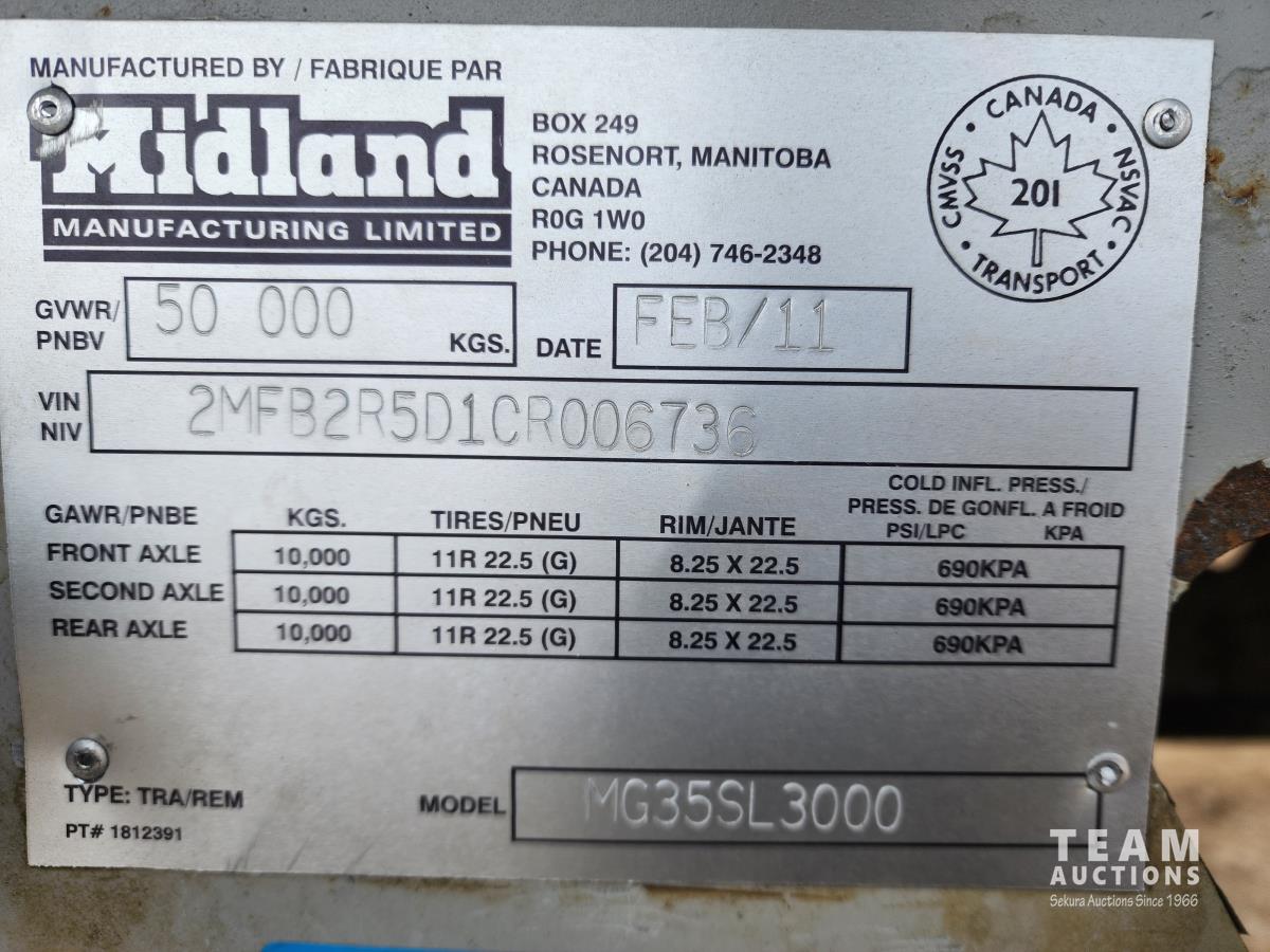 2582 2012 Midland SL3000 35 Ft Tri-Axle End Dump Trailer