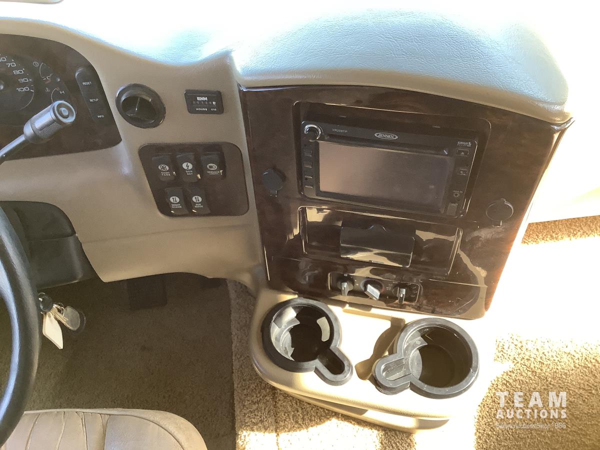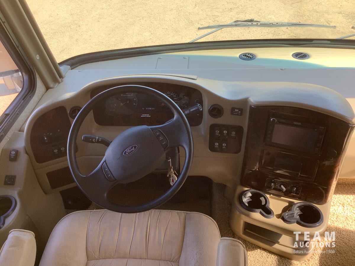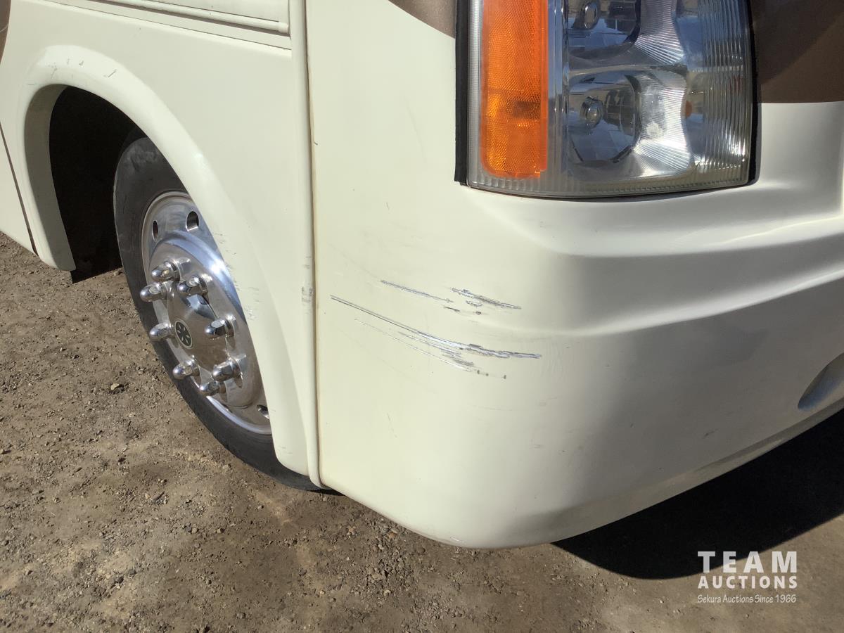 Ford chassis, V10 gas engine, automatic transmission, hydraulic brakes, 8,000 front and 15,000 rear axles, 235/80R22.5 rear dual wheels, 3 slides, AC, fridge, stove, microwave, full bathroom with 2 entrances, gas fire place, full size rear bedroom, 3 TV's, hydraulic Ultra Levelling system, dividing privacy doors, all outside storage compartments open and close, Cummins Onan RVQG5500 generator, slides all work as seen in the pictures