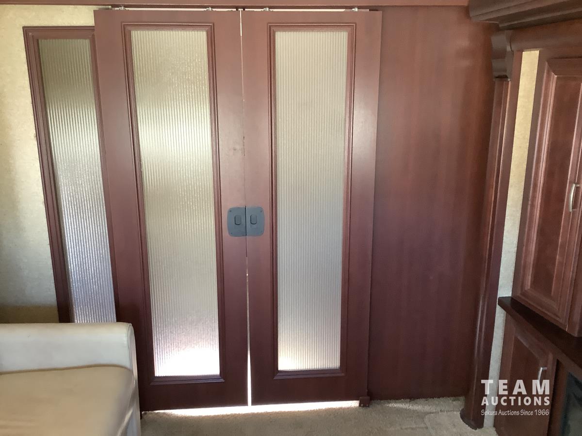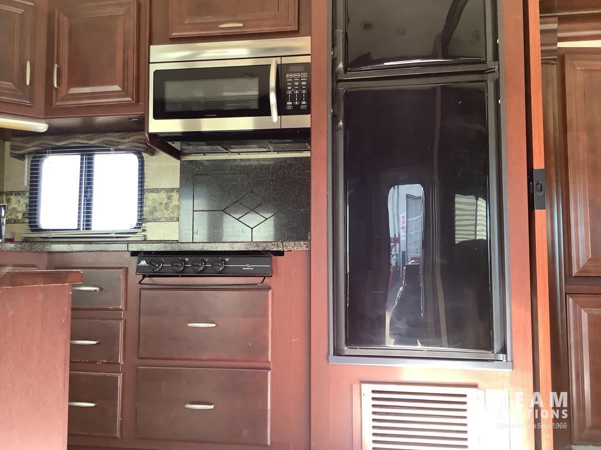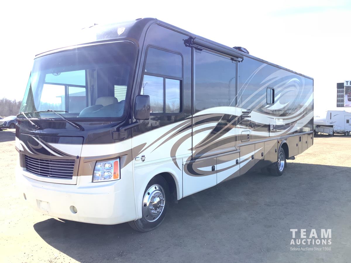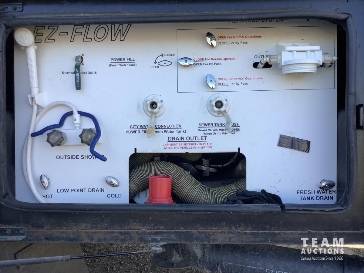 Ford chassis, V10 gas engine, automatic transmission, hydraulic brakes, 8,000 front and 15,000 rear axles, 235/80R22.5 rear dual wheels, 3 slides, AC, fridge, stove, microwave, full bathroom with 2 entrances, gas fire place, full size rear bedroom, 3 TV's, hydraulic Ultra Levelling system, dividing privacy doors, all outside storage compartments open and close, Cummins Onan RVQG5500 generator, slides all work as seen in the pictures