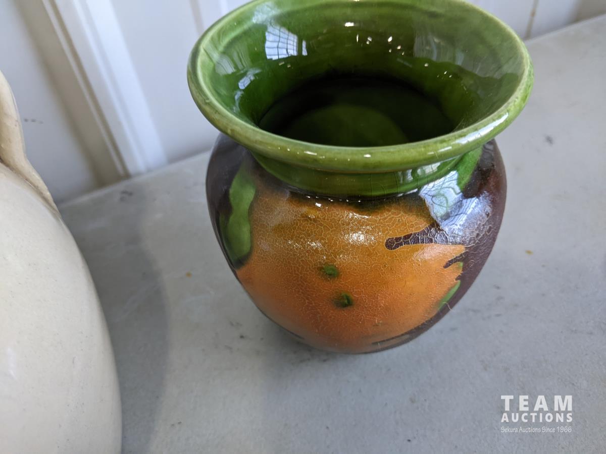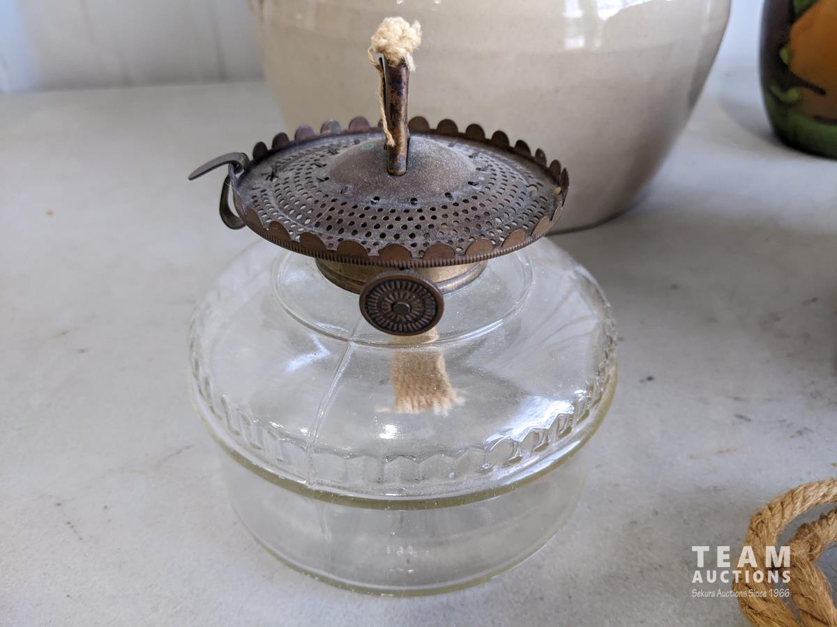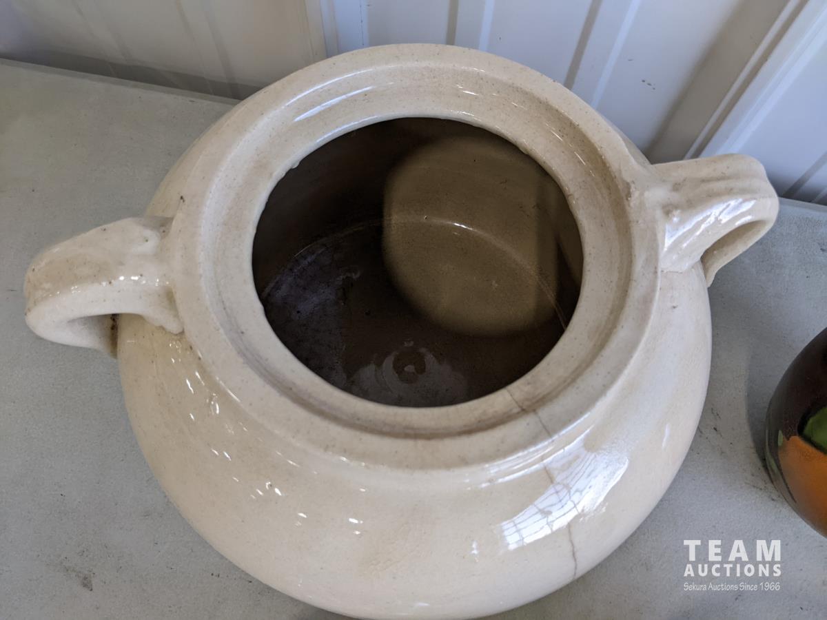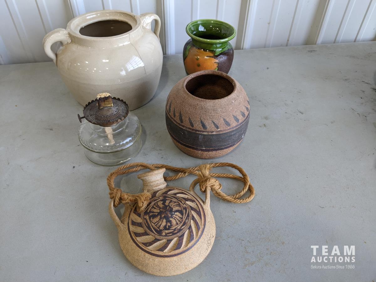 1752 (3) Piece Pottery, Crock and Oil Lamp Base