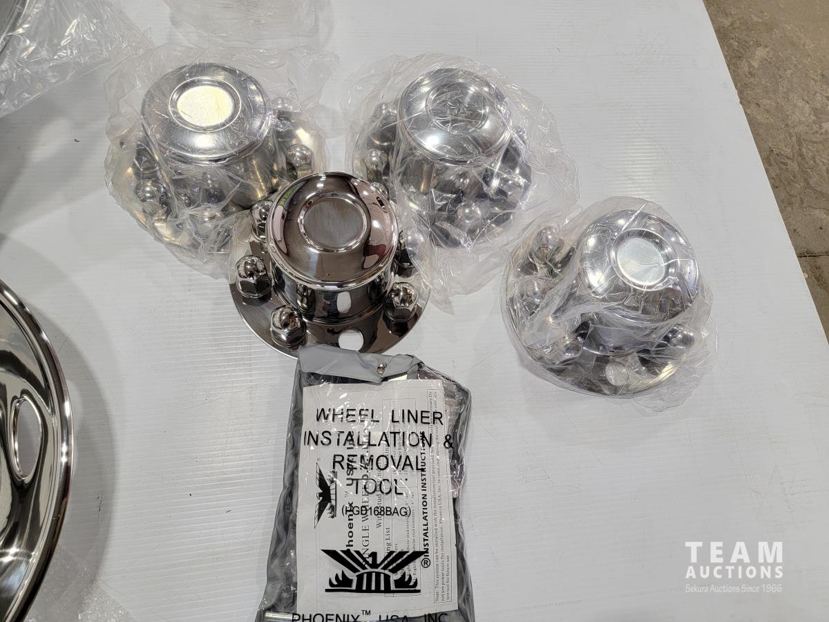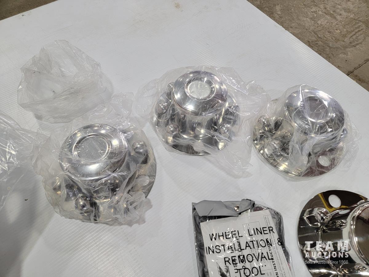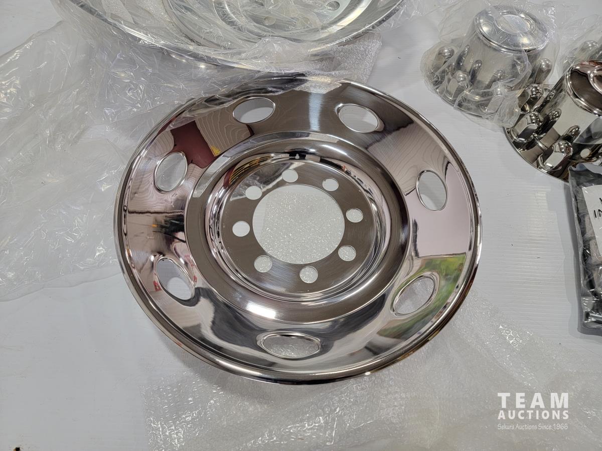 1853 (4) 16 Inch Wheel Beauty Rings and (4) Hub Caps