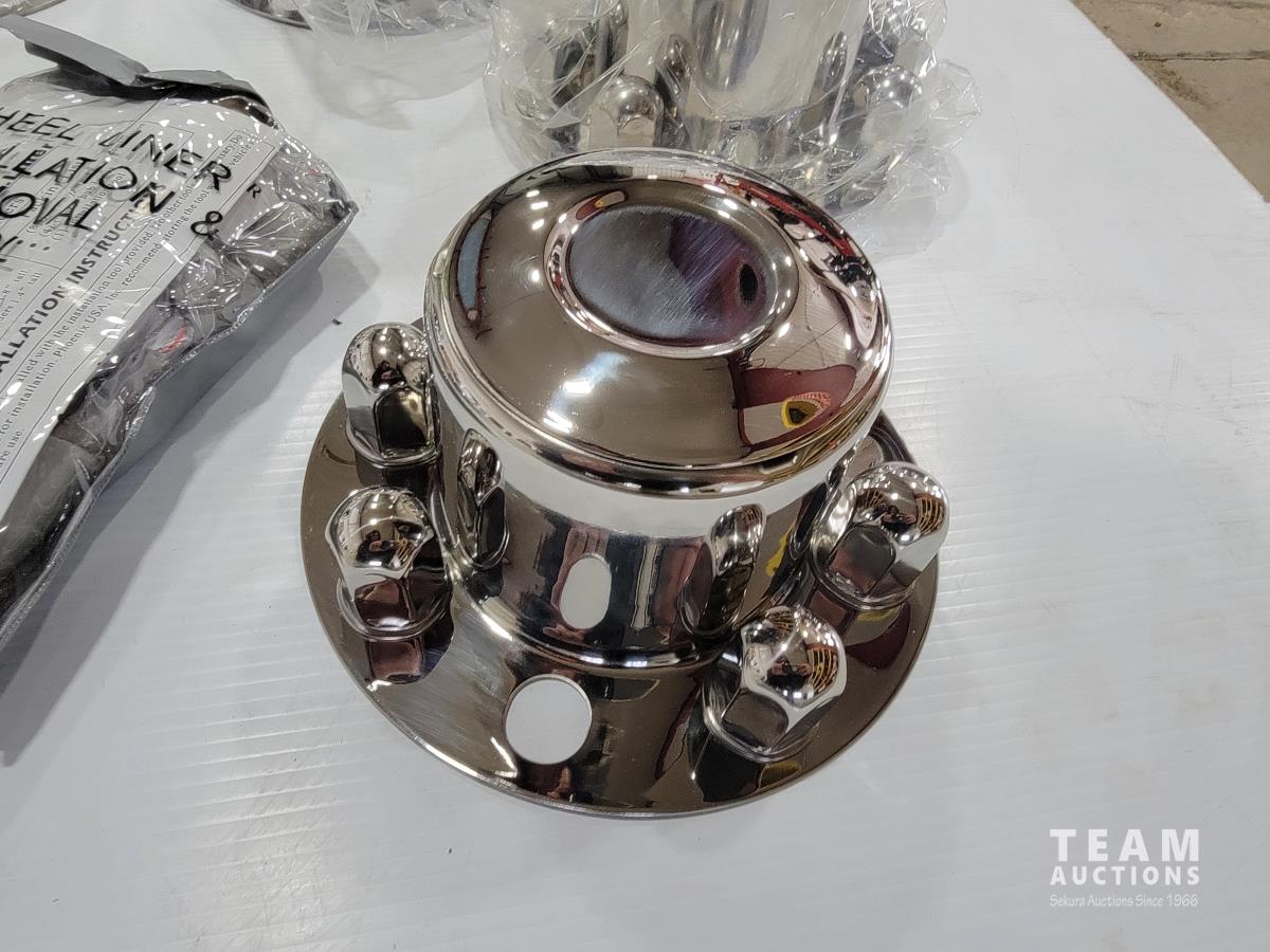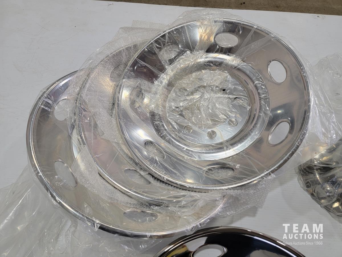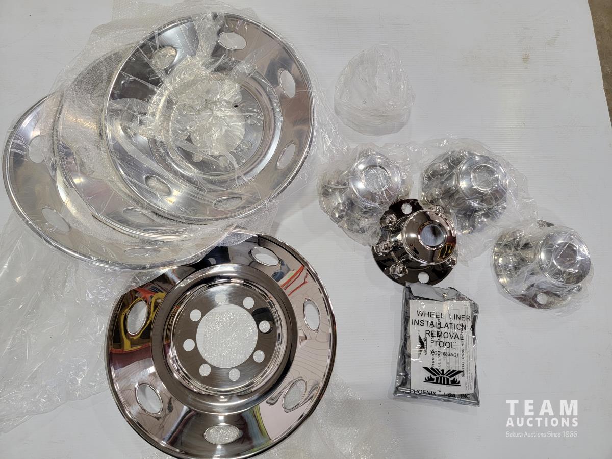 1853 (4) 16 Inch Wheel Beauty Rings and (4) Hub Caps