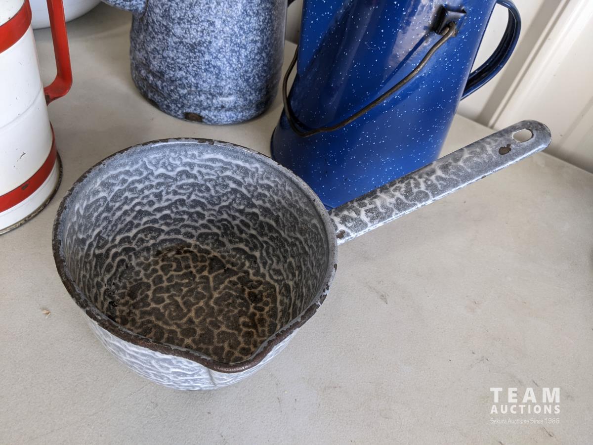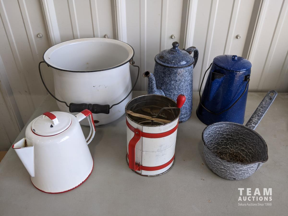 1762 (6) Piece Vintage Tin/Enamel Items