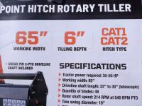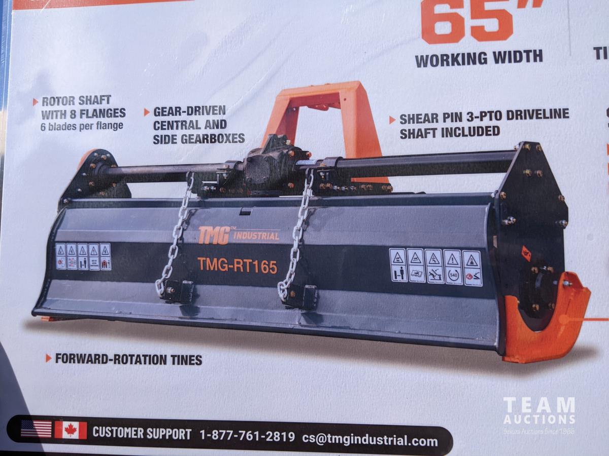 2557 TMG Industrial TMG-RT165 65 Inch 3-Point Hitch Rotary Tiller Attachment (Unused)