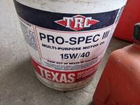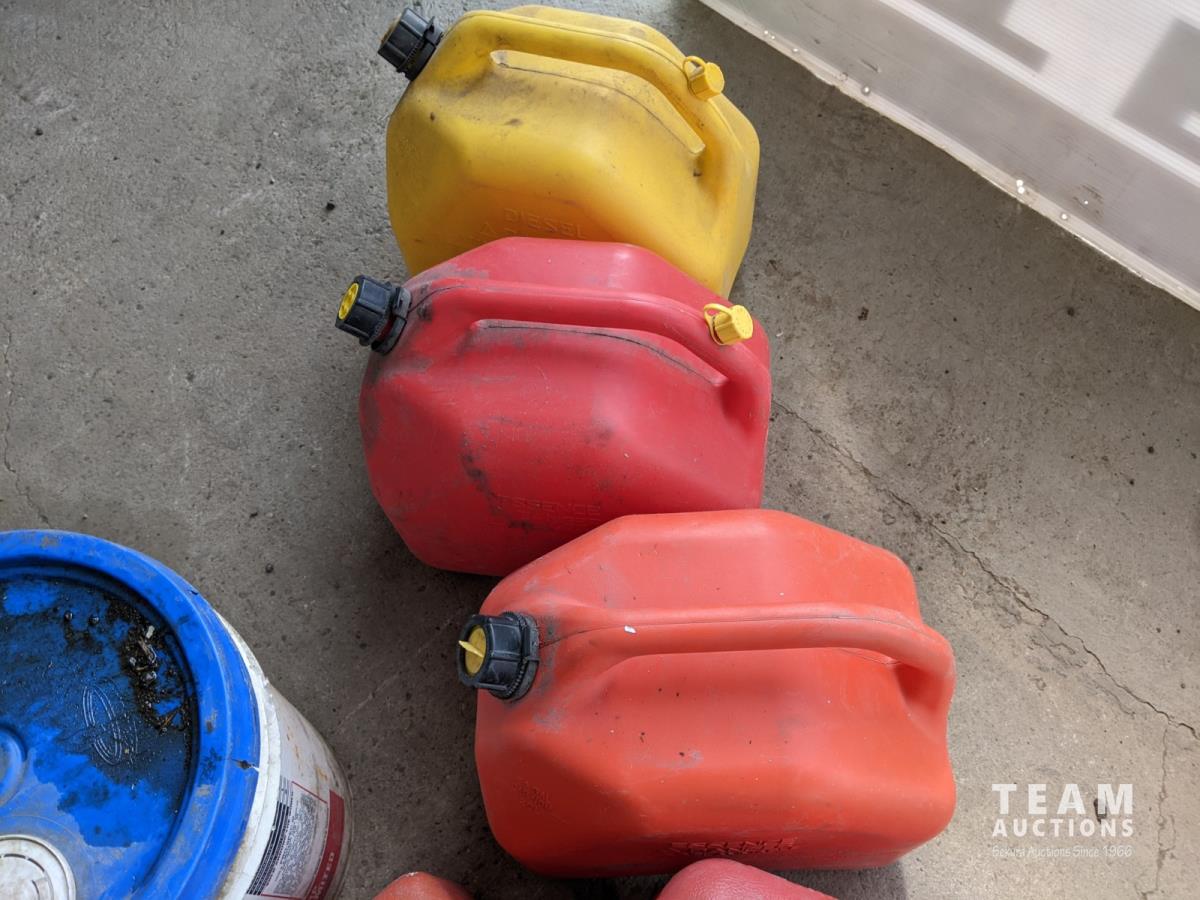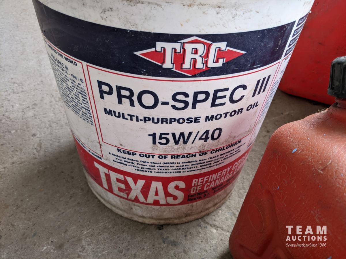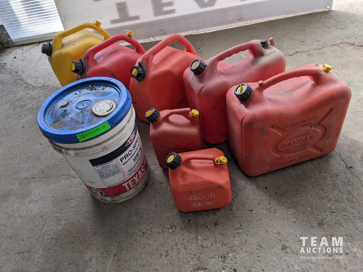 1266 (7) Various Sized Jerry Cans and 5 Gallon Pail of 15W40 Oil (Unused)