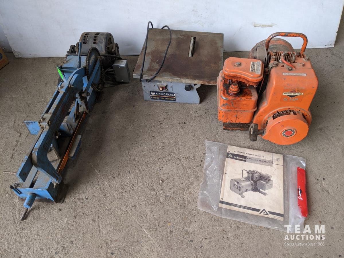 Kwik-Kut bandsaw, King Canada 7 inch tile Saw, Acklands gas generator with 5 HP Briggs & Stratton 4 cycle engine