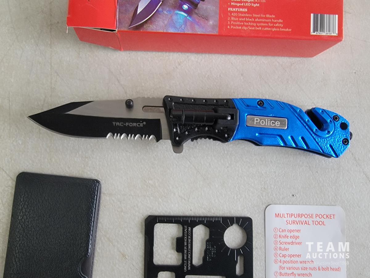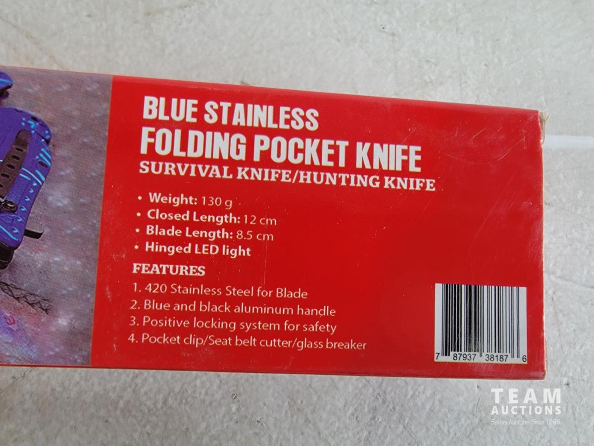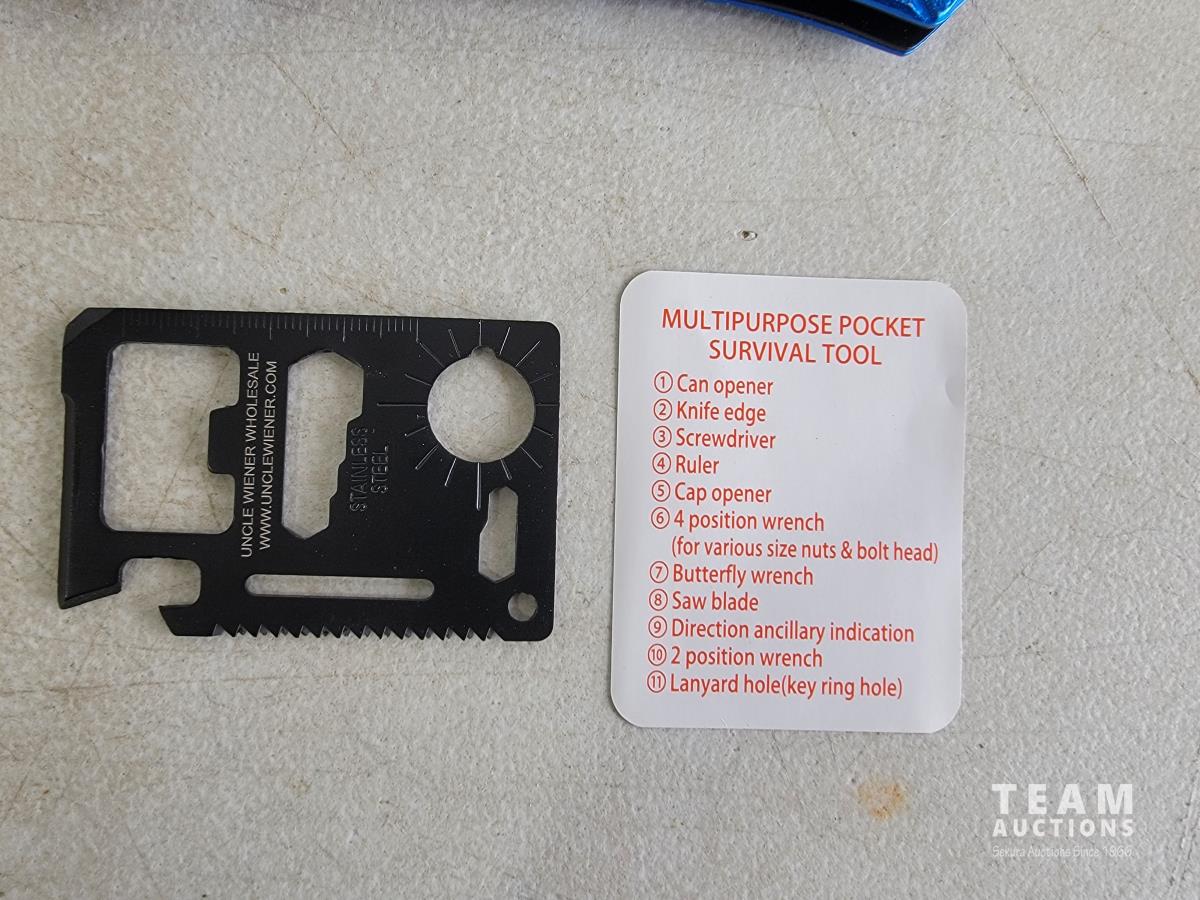 2194 Blue Stainless Pocket Folding Knife and Multipurpose Pocket Survival Tool (Unused)