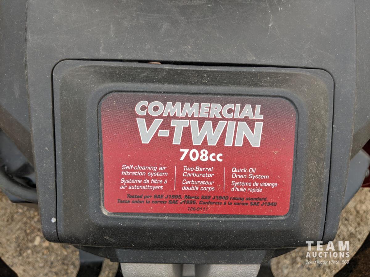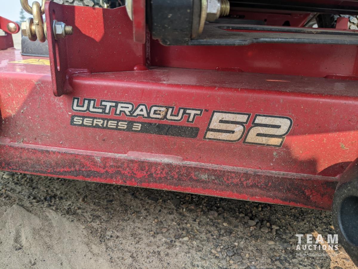V-Twin 708 cc gas engine, Ultracut Series 3 52 inch mowing deck, 13X6.50-6 front tires, 22X9.50-12 rear tires