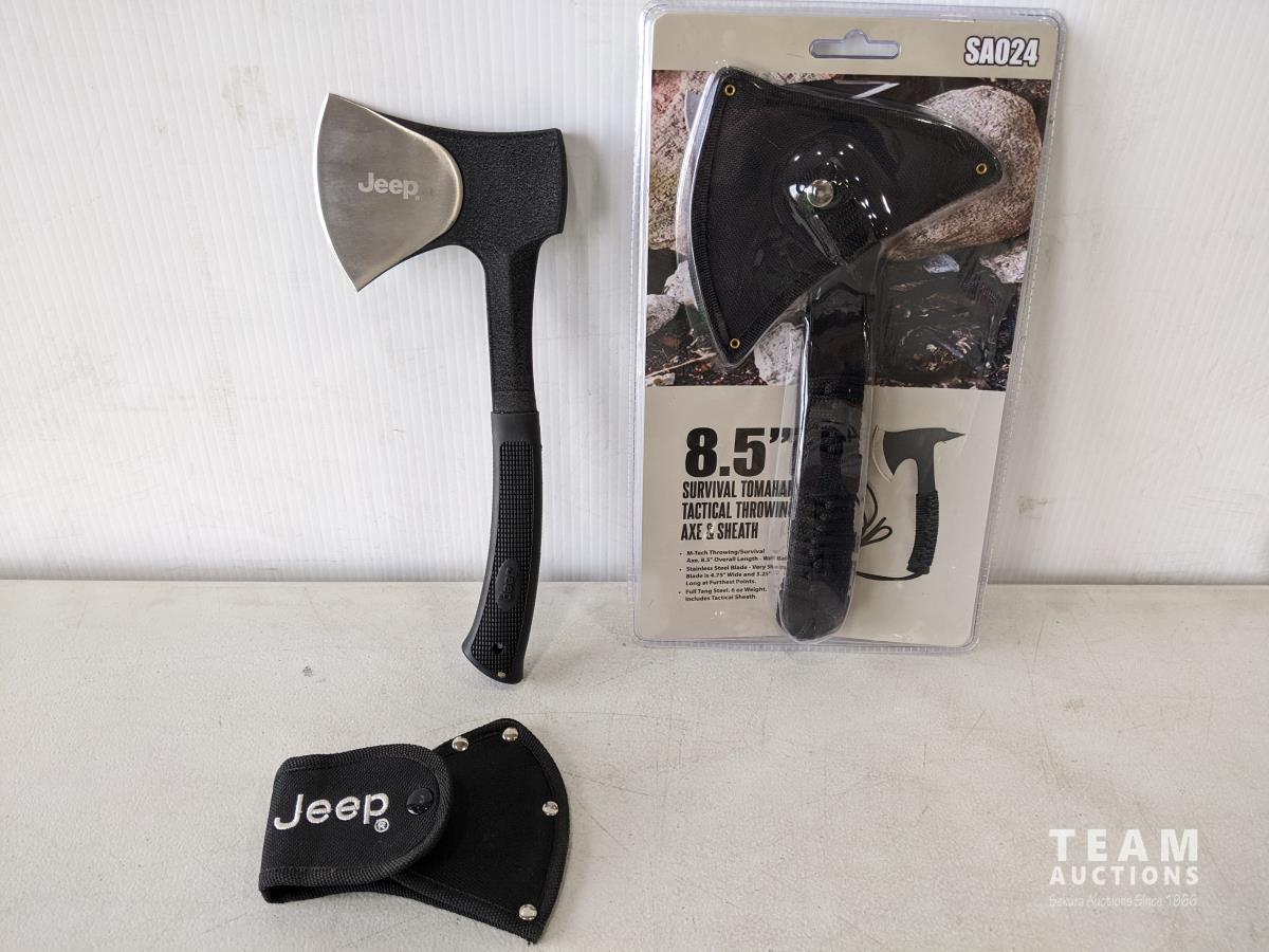 1920 Jeep Hatchet and 8.5 Inch Tomahawk Tactical Throwing Axe and Sheath (Unused)