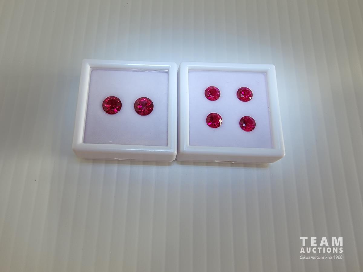 2246 Lab Created Red Ruby Corundum (2) 8.0 mm 2Ct and (4) 6.5 mm 1Ct (Unused)