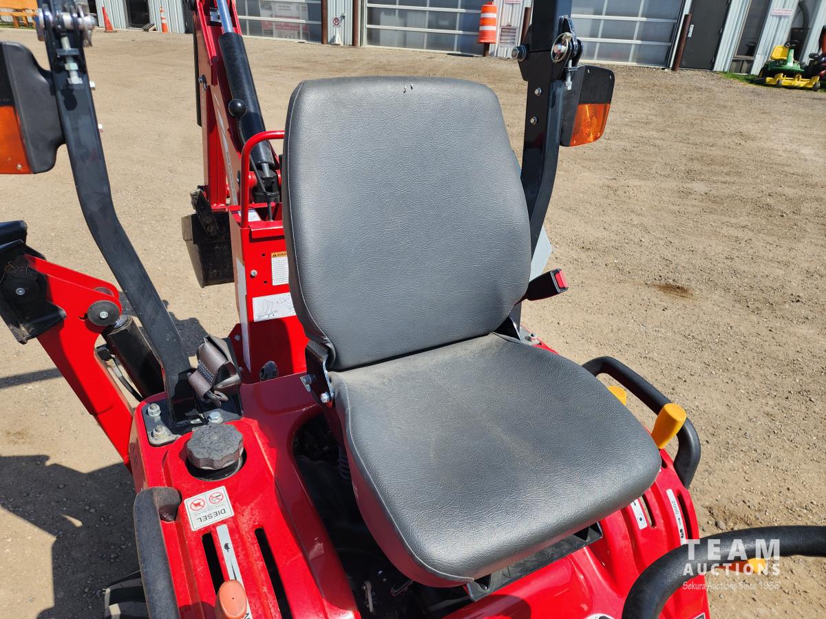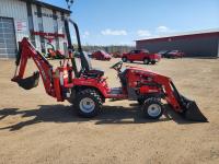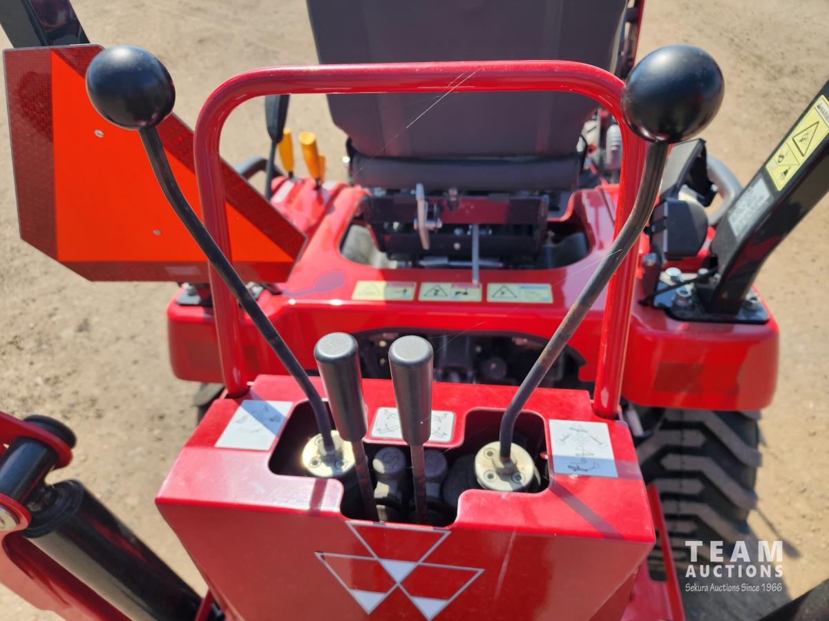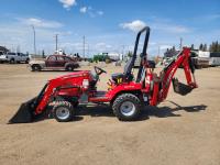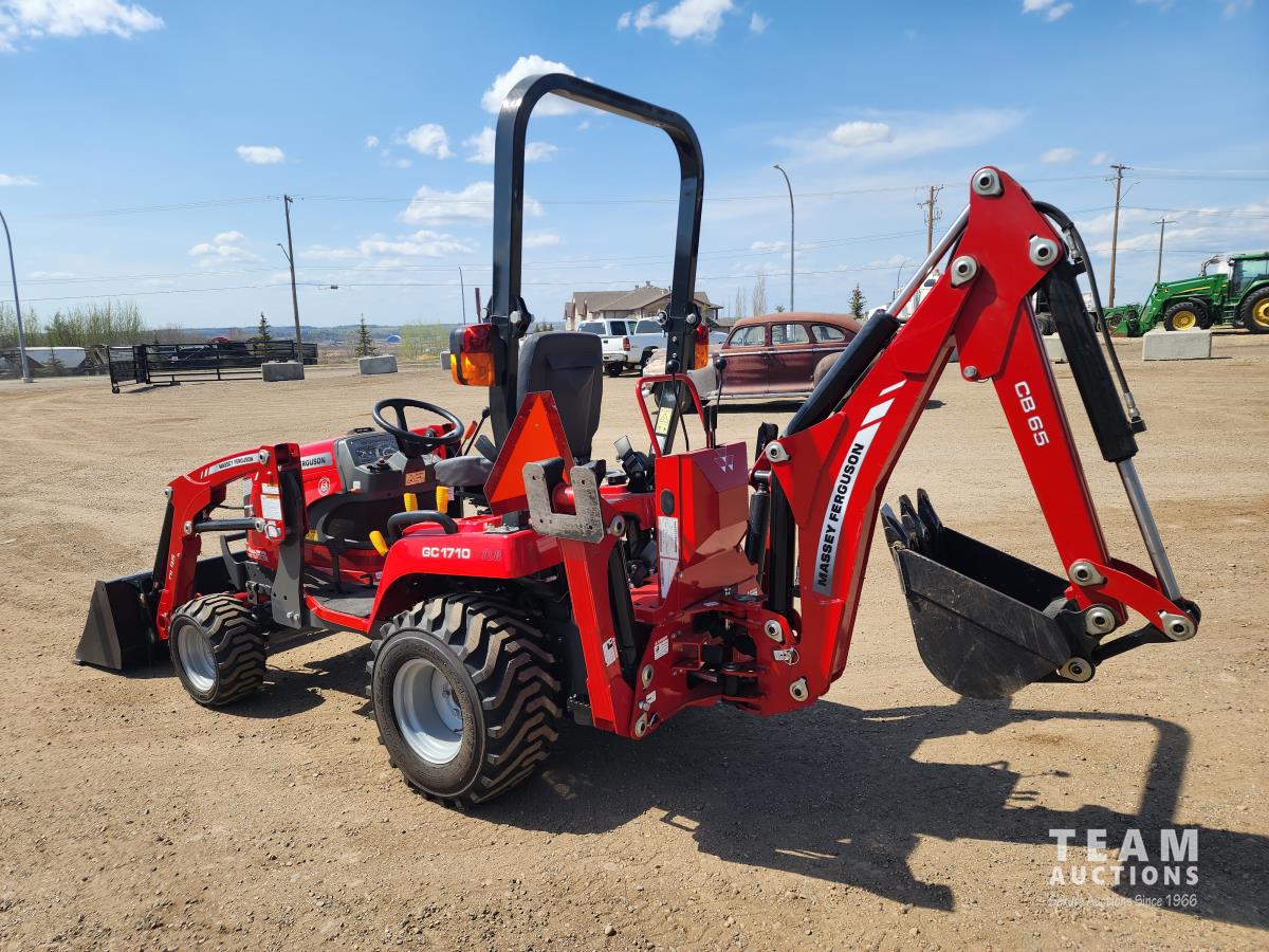 Massey Ferguson DL95 loader, 47 inch bucket, ISEKI 1.124 L diesel engine, hydro 2 range transmission, open station platform, ROPS, 540 PTO, 3 point hitch, Massey Ferguson CB65 backhoe with 12" dig bucket, 18.8X8.5 front tires, 26X12.00 rear tires