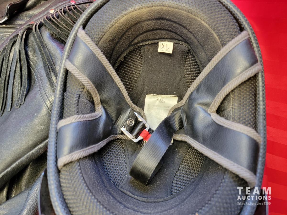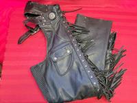 Chaps size Large. Jacket size XL, helmet size XL