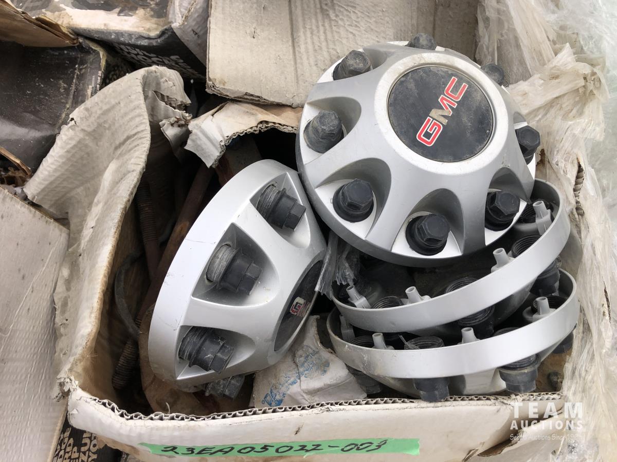 8 bolt GMC hubcaps, assorted u-bolts, GM skid plate