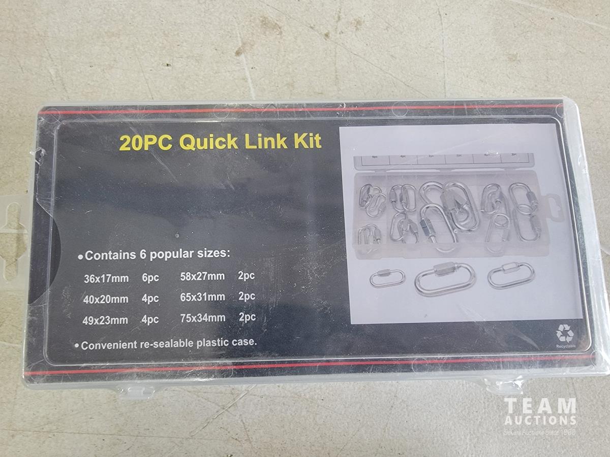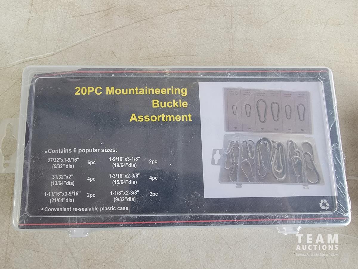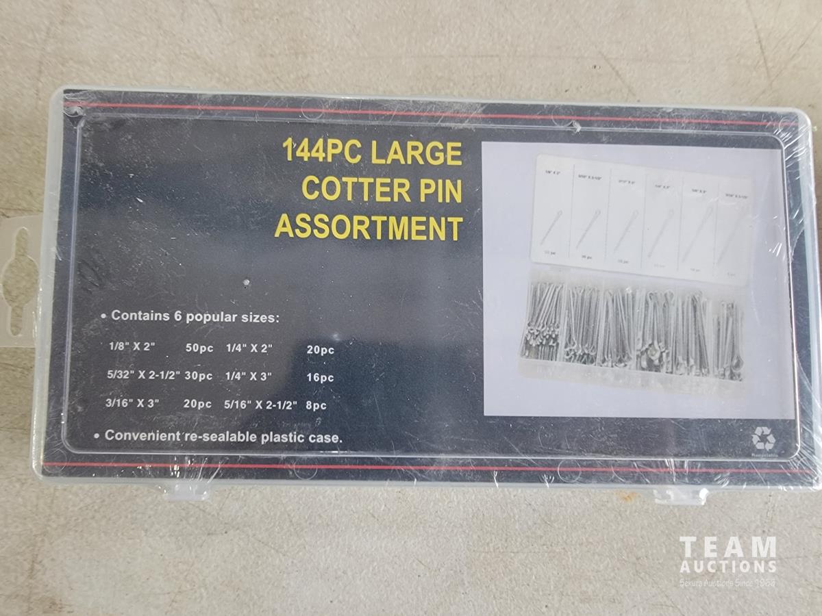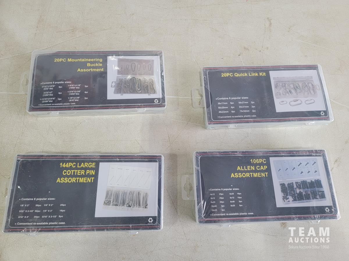 20 piece Quick Link Kit, 144 piece Large Cotter Pin Assortment, 106 piece Allen Cap Assortment, 20 piece Mountaineering Buckle Assortment