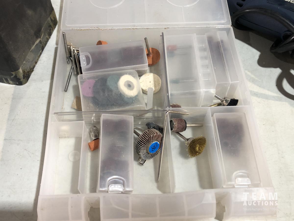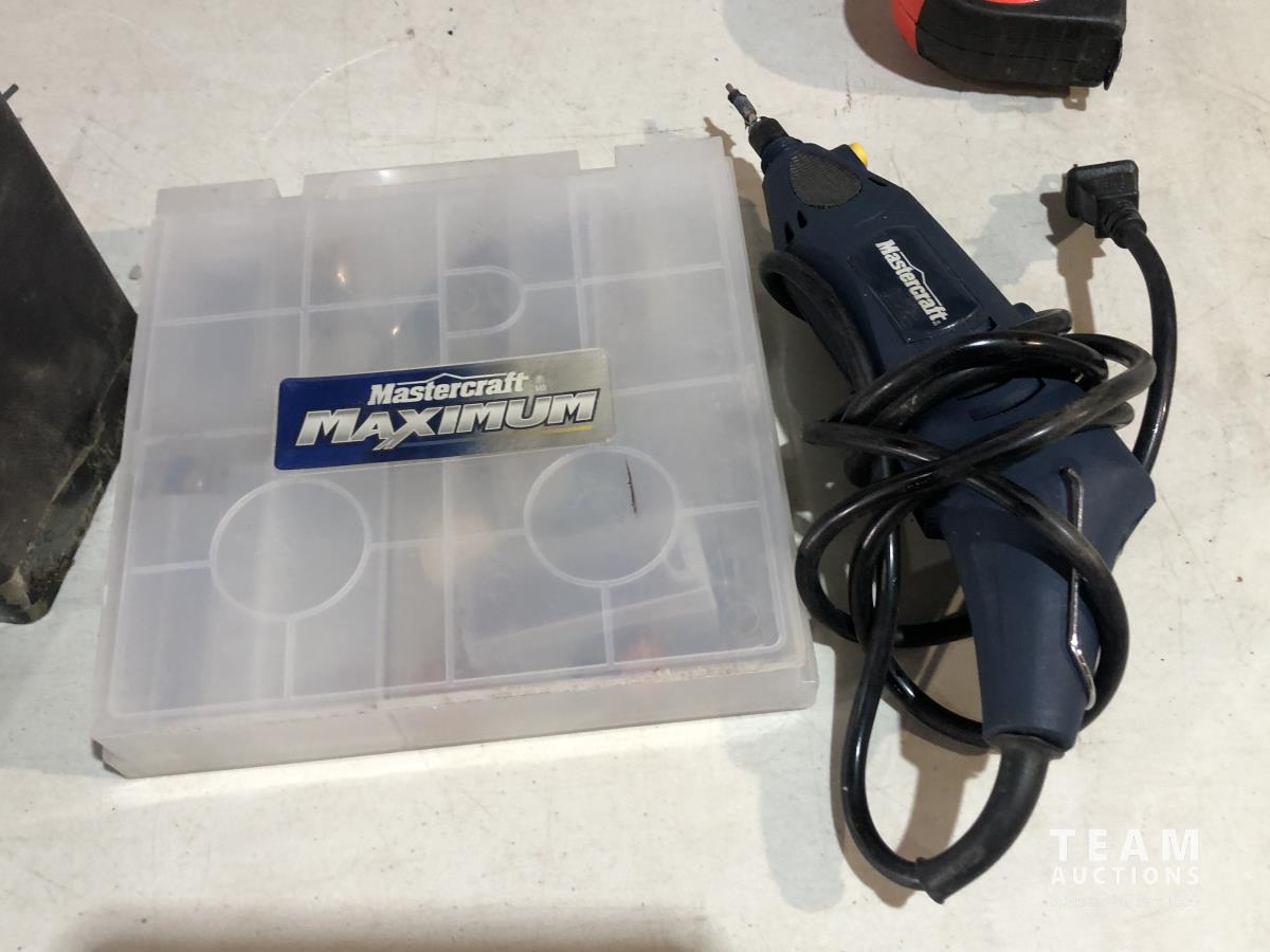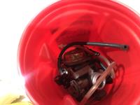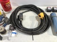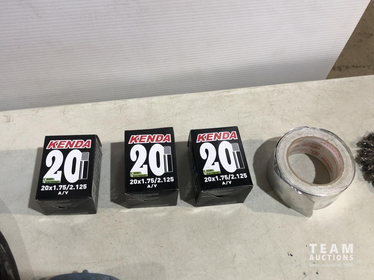 TGT200 generator (inoperable), snow mobile dolly's, heavy duty extension cord 240v, Mastercraft rotary tool, welding rods and bike tire tubes