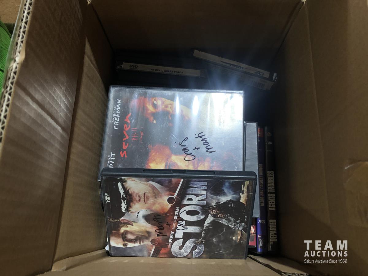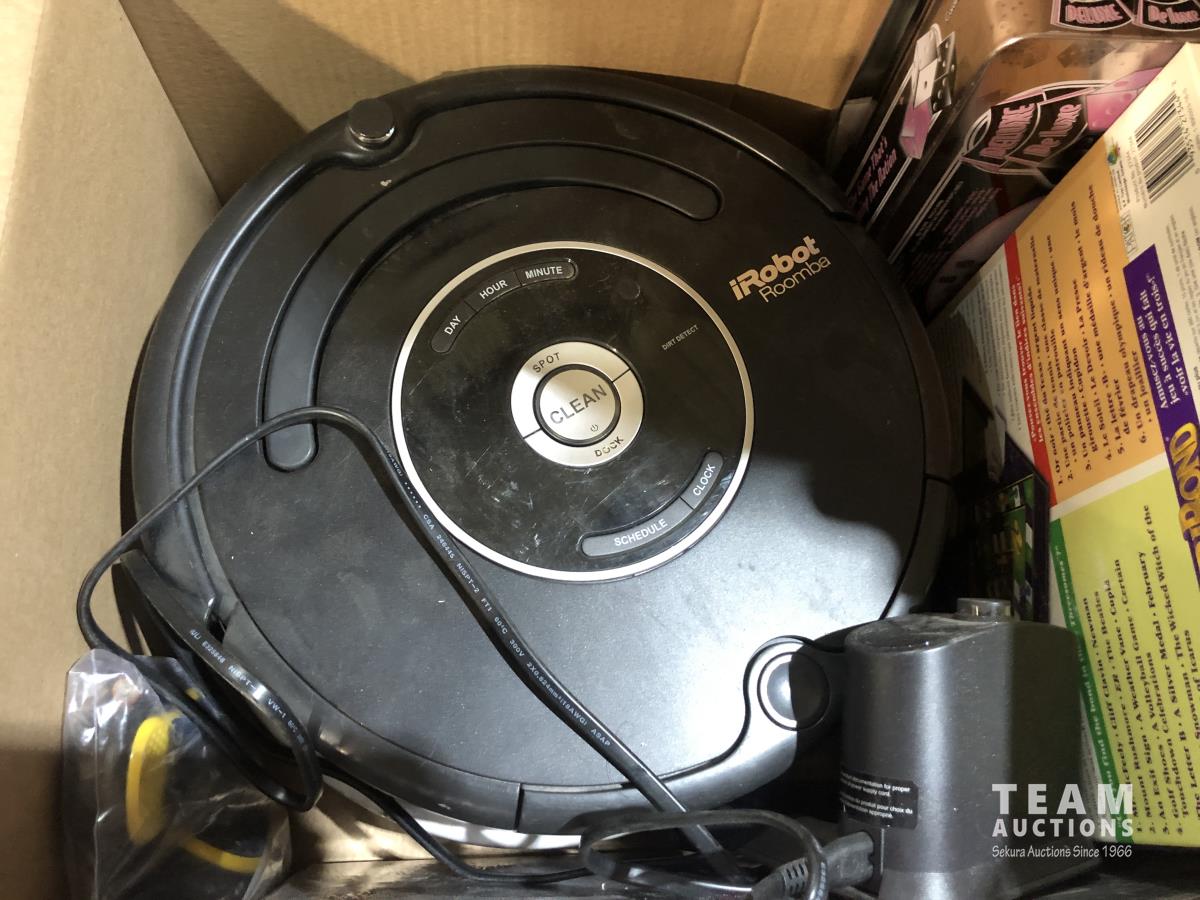 Roomba, portable DVD player, bar glasses, poker chips, miscellaneous cookware and board games