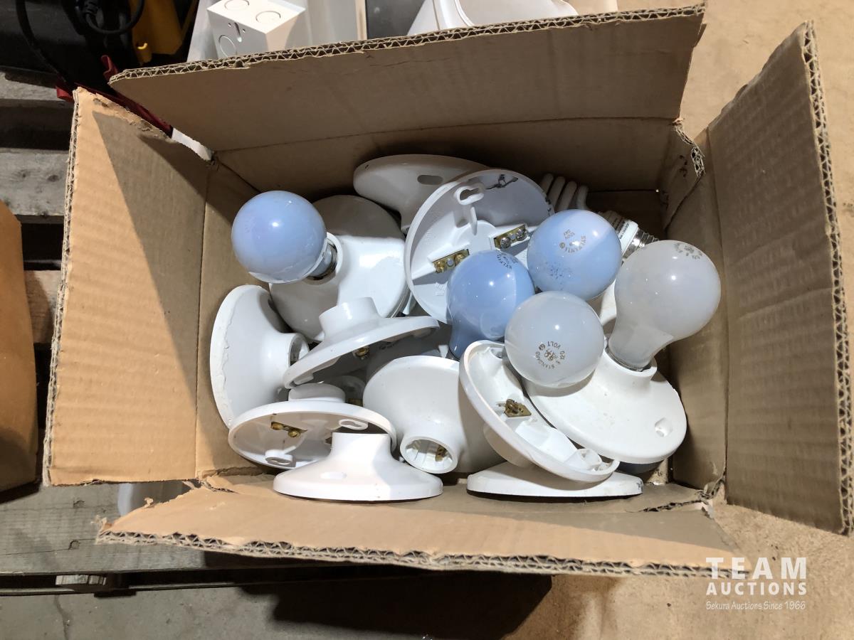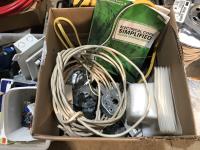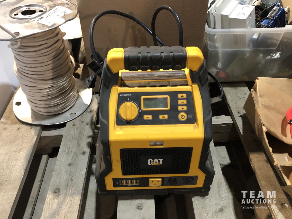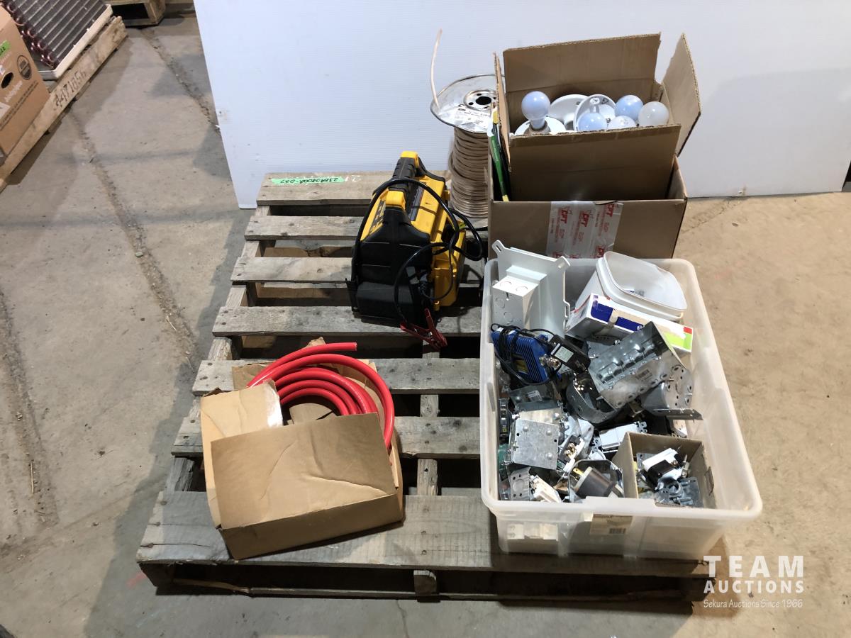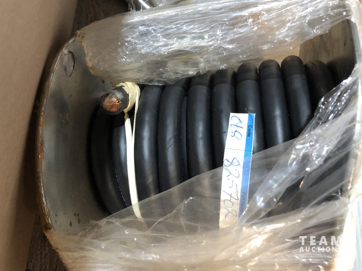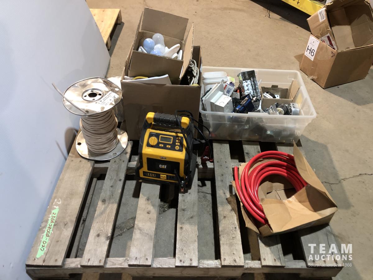 Qty light fixtures, light boxes, 3 wire, cat air compressor/booster, heavy wire, partial roll ground wire and heavy 50v copper wire
