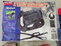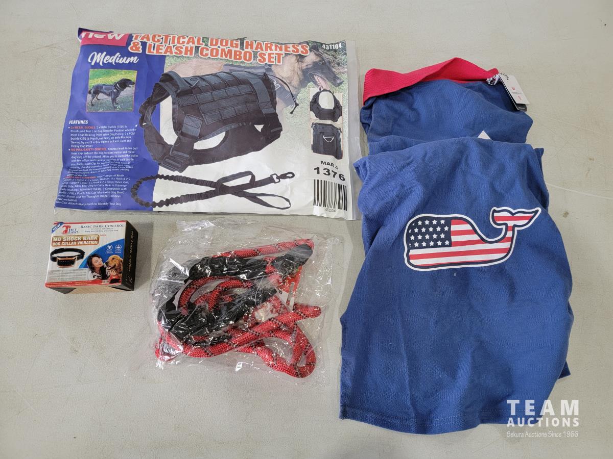 (2) Medium dog shirts, bark collar, dog leash and Medium tactical dog harness and leash combo set