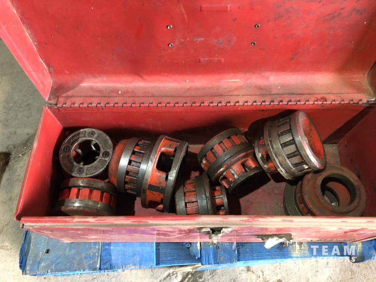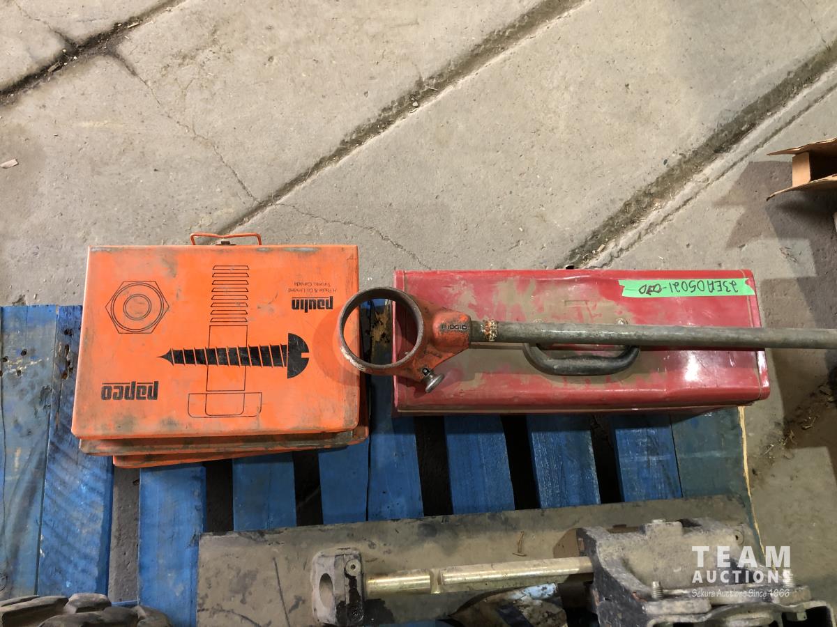 Pipe threader with heads, various screws, roll pins, Allan wrenches