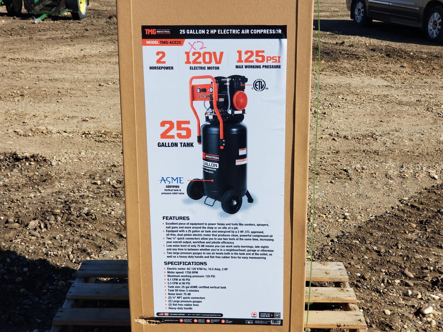 1514 TMG Industrial TMG-ACE25 25 Gallon Electric Air Compressor (Unused)