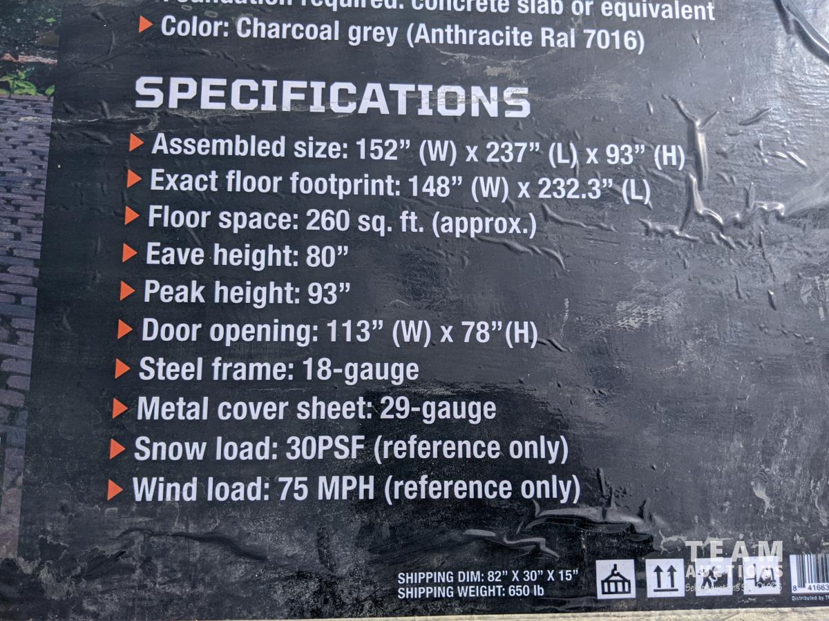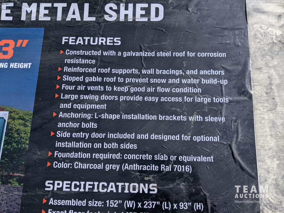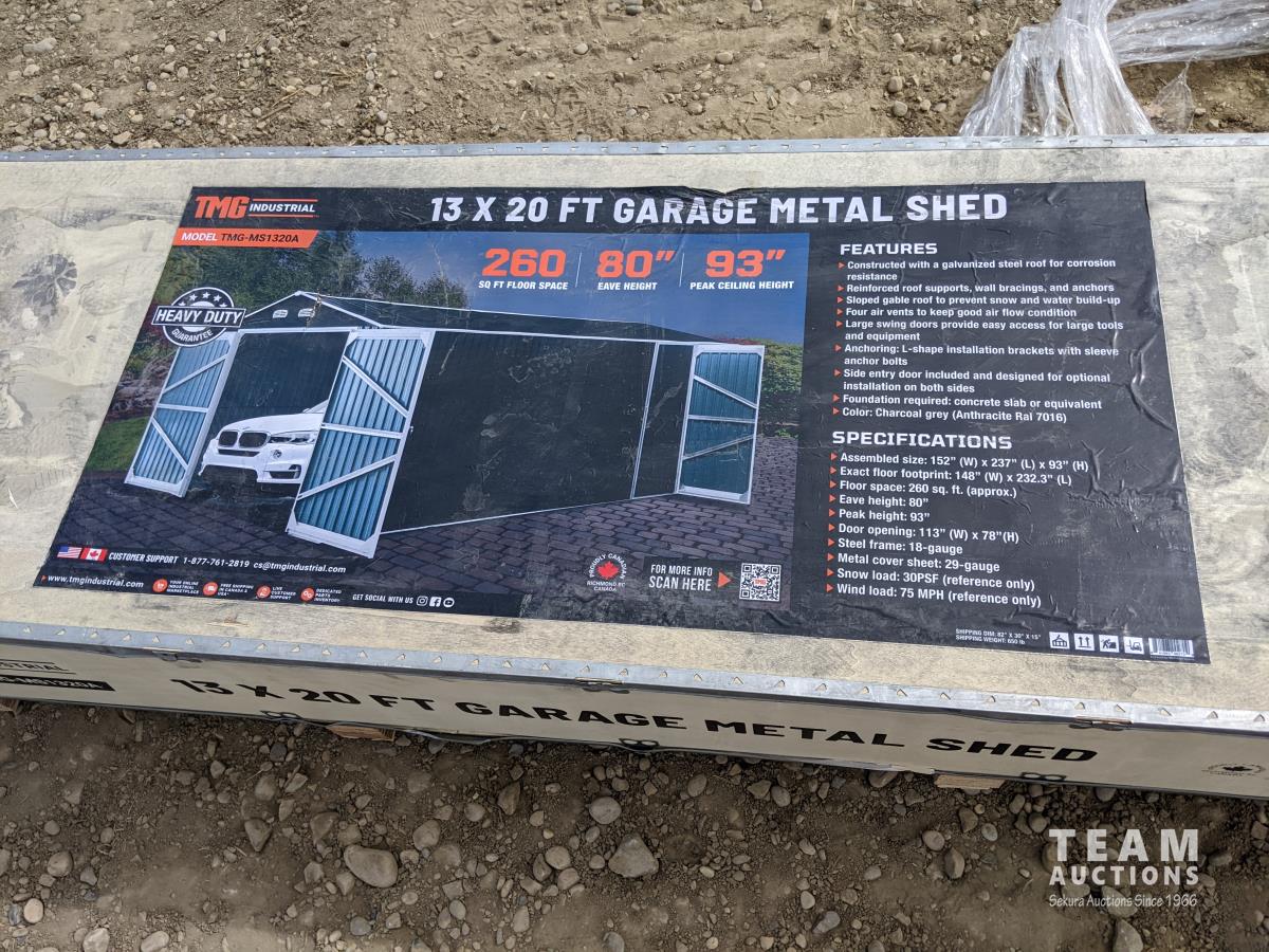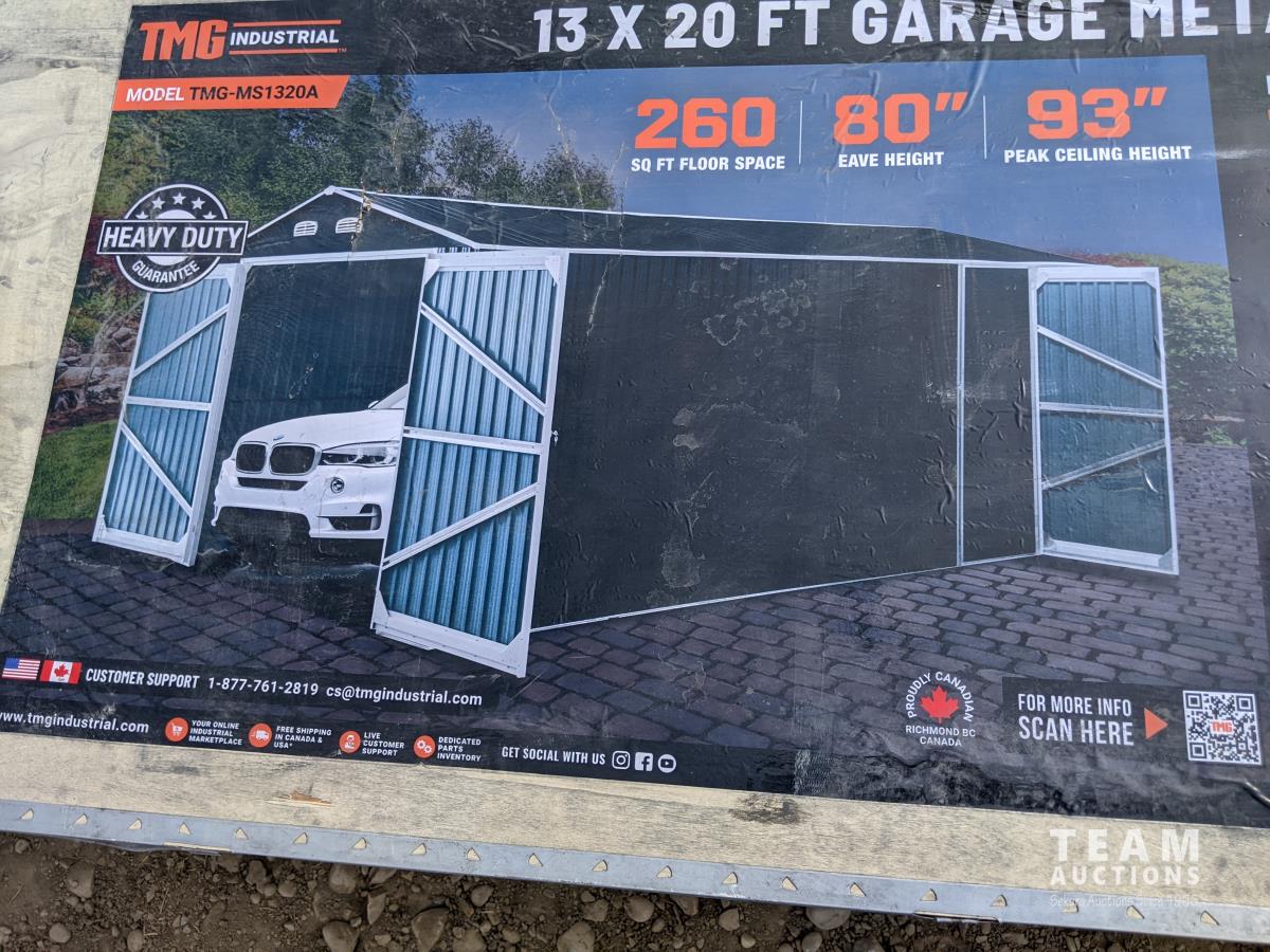 2493 TMG Industrial TMG-MS1320A 13 Ft X 20 Ft Metal Garage Shed with Double Front Doors (Unused)