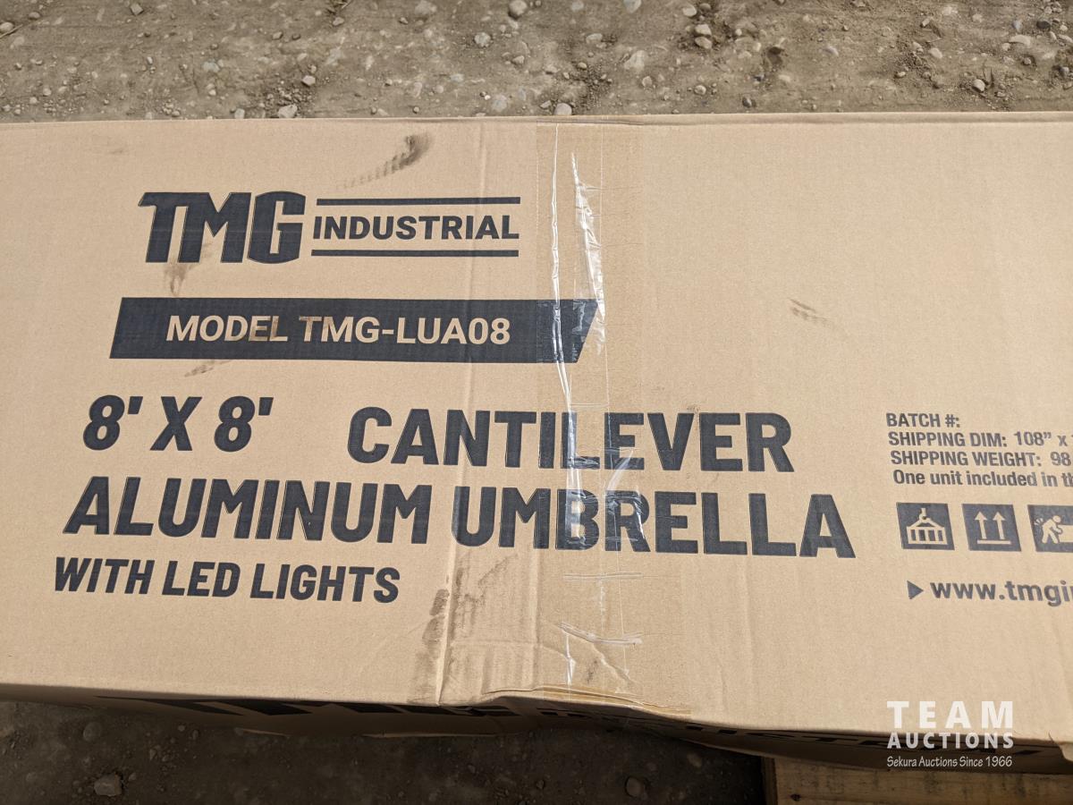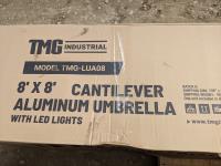 2481 TMG LIVING TMG-LUA08 8 Ft X 8 Ft Cantilever Offset Aluminum Umbrella with LED Lights (Unused)