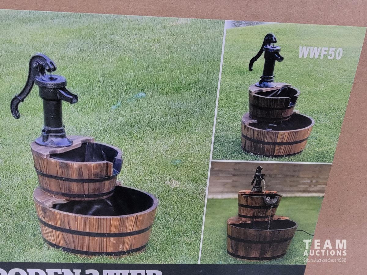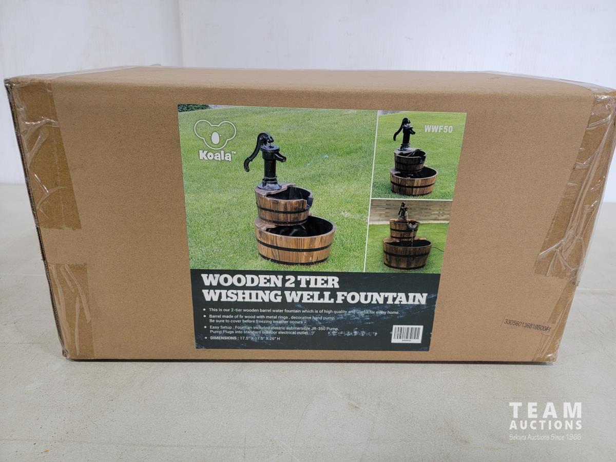 1172 Wooden 2 Tier Wishing Well Fountain (Unused)