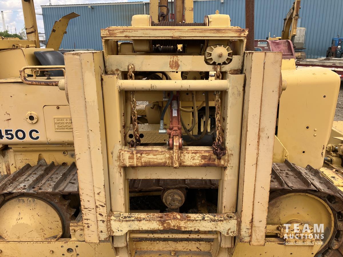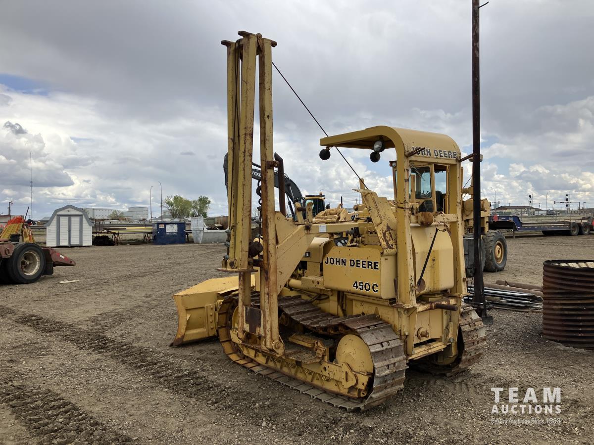 John Deere 3.6L diesel engine, 8 speed-2 speed power shift transmission, 90 inch straight blade, 6 way blade, 16 inch track width, new battery, CNV hrs