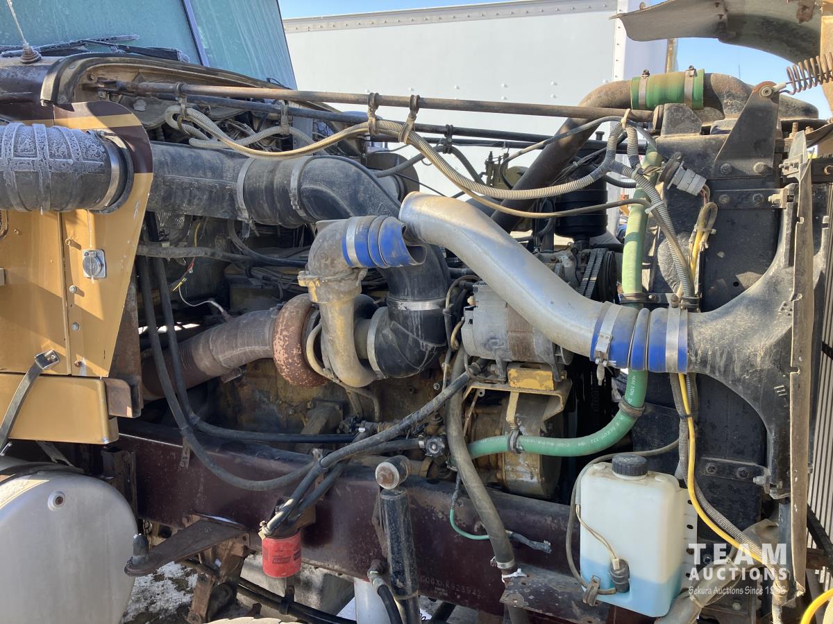 Caterpillar 3406B 14.6 L 6 cylinder 425 HP diesel engine, positive air shutoff, Eaton Fuller RTO 15618 18 speed manual transmission, radio, Westank 15898 liter tank, spring suspension, 14,400 lb front axle, 38,000 lb rear axles, diff lock, 235 inch WB, 315/80R22.5 front tires, 11R24.5 rear tires