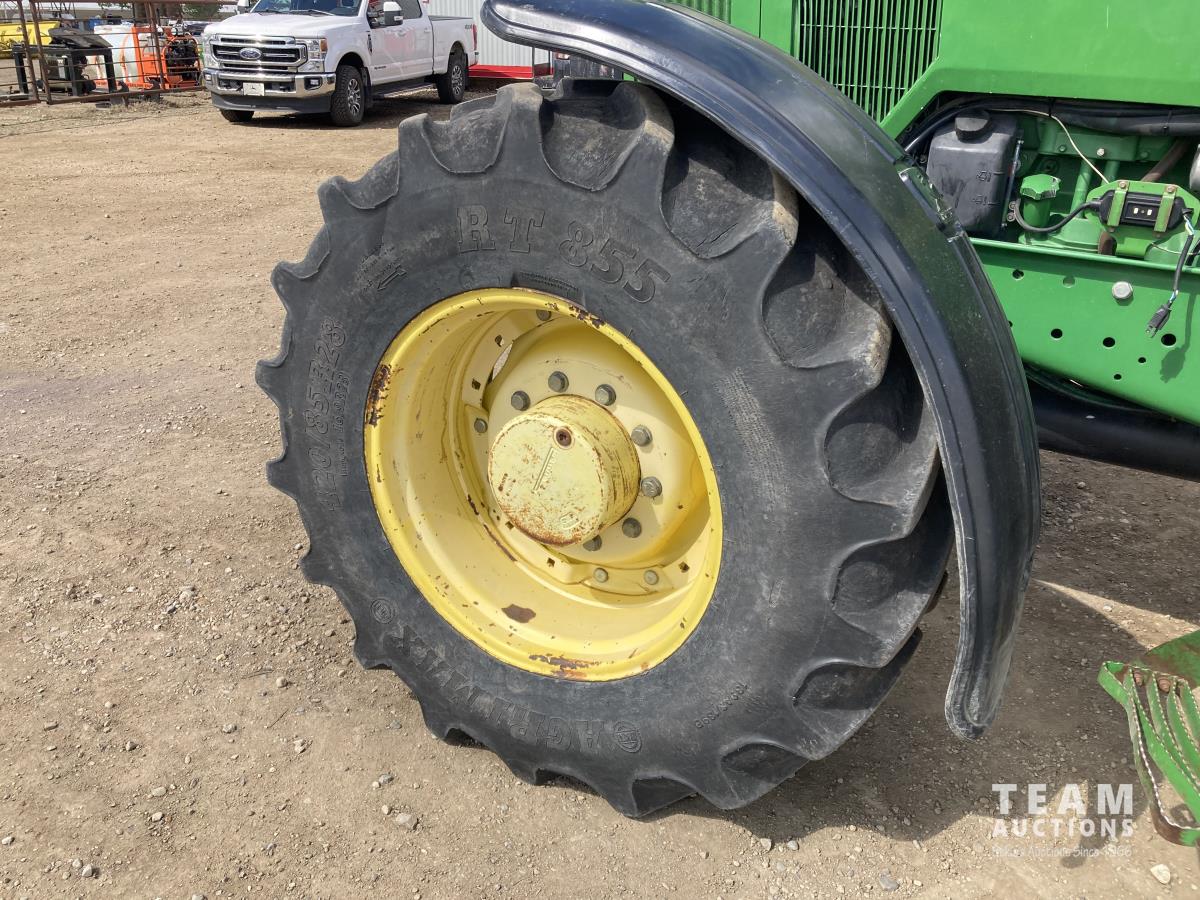 8.1 L 155 HP, diesel engine, 135 PTO HP, 16 speed partial power shift transmission, cab, ROPS, rear differential lock, A/C, 12 front weights, 540/1000 PTO, 3 point hitch exterior control, 4 rear hydraulic outlets, 420/85R28 front tires, 520/85R38 rear tires