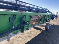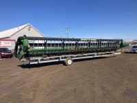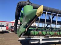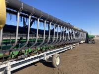 Crary Air Reel, P/U reel, hydraulic fore & aft, row dividers, poly skid plates, to fit John Deere 60/70/S series combines, full finger auger, single knife drive, transport trailer