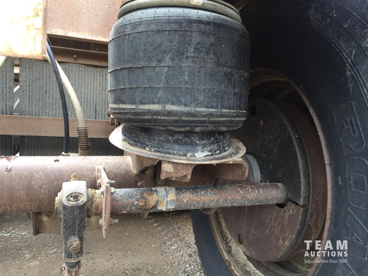 8 ft 6 inch box width, 80 inch side wall height, roll tarp, central tire inflation, air brakes, air ride suspension, 20,000 lb axles, cross gate, 11R24.5 tires