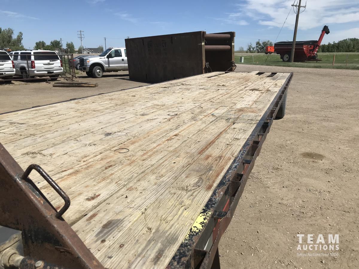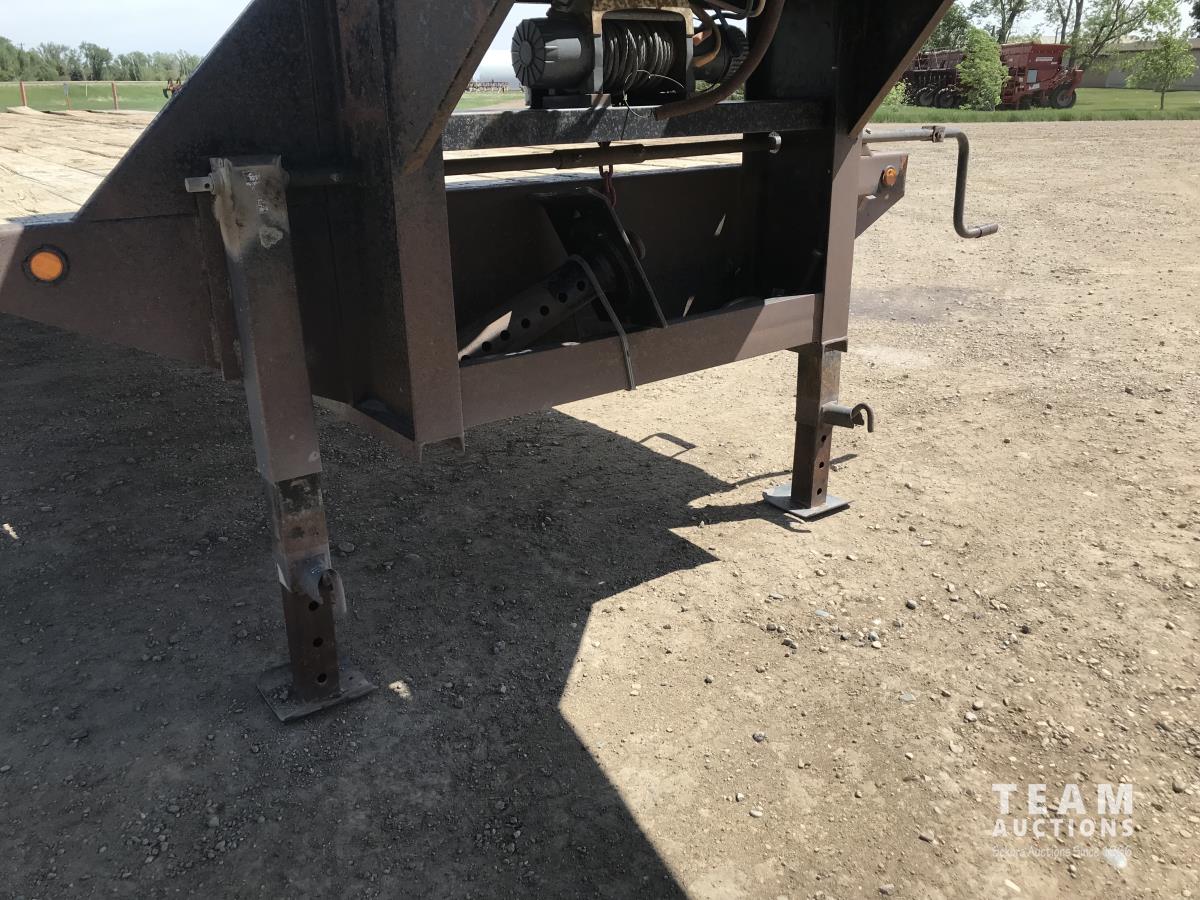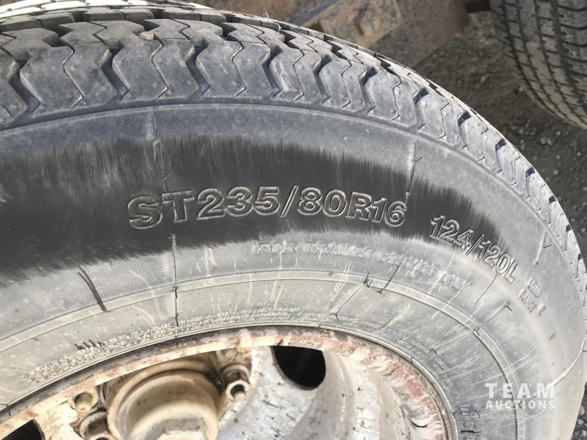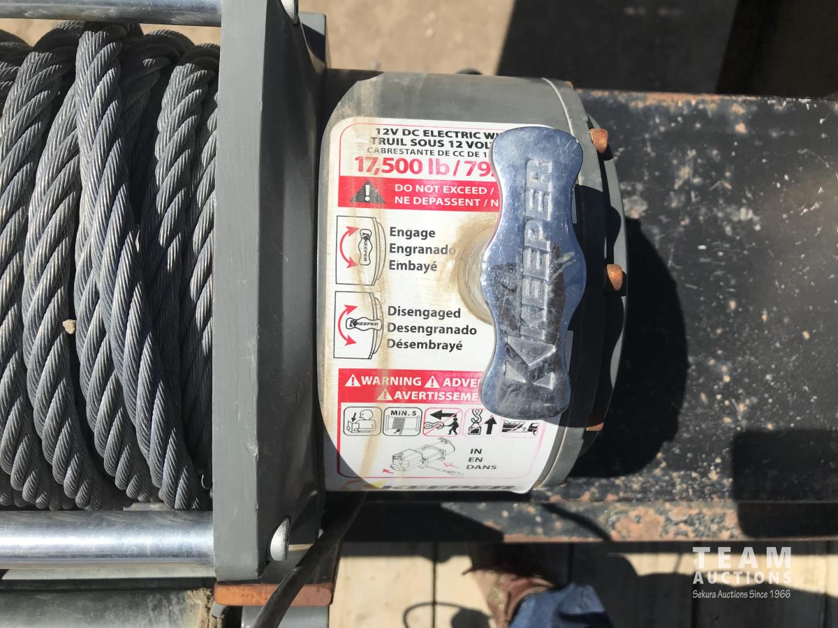 102 inch wide deck, wood deck, stake pockets, rub rails, cargo winches, rear live roll, 10, 500 Lb. axles, (2) 17, 500 lb. winch, spring suspension, ST235/80R16 tires