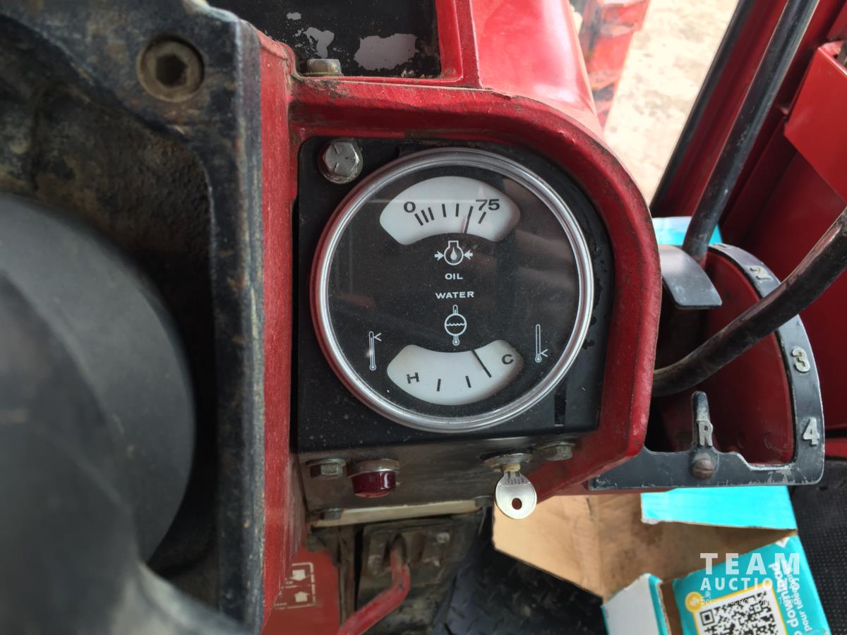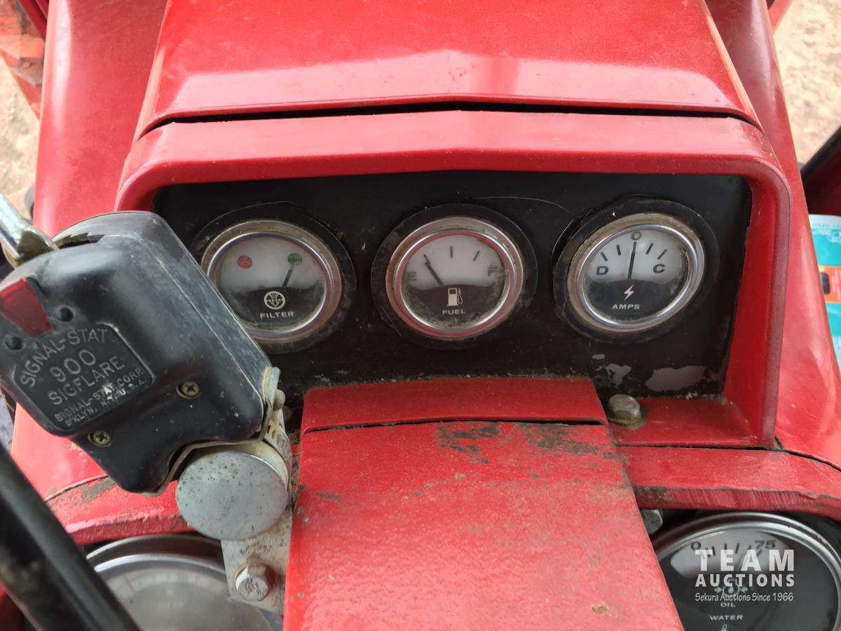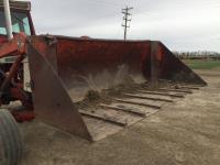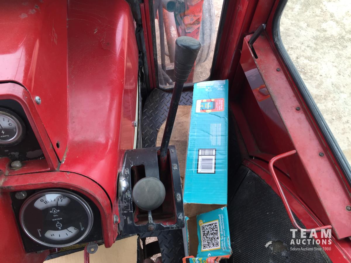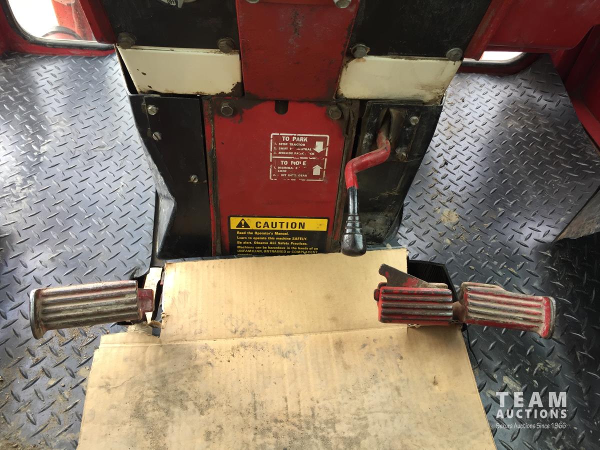 Massey Furgeson loader, 80 inch bucket, 5.9 L 6 cylinder 73 HP, diesel engine, 85 PTO HP, 8 speed partial power shift transmission, 12 GPM hydraulic pump, cab, 1 front hydraulic outlets, 540/1000 PTO, 2 rear hydraulic outlets, 10.00-16 front tires, 18.4-3 rear tires