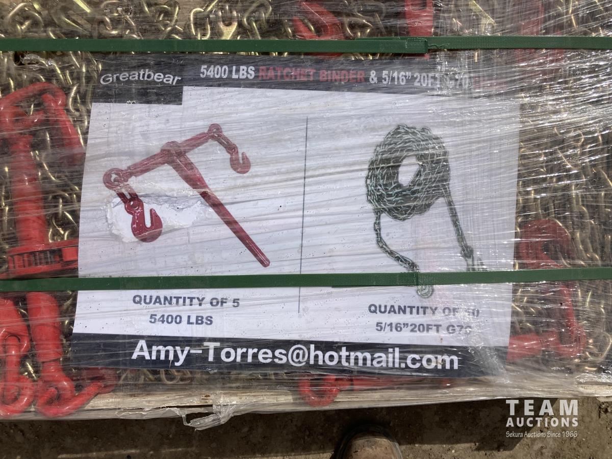 11 Greatbear (5) 5400 lb Ratchet Binders W/ (10) 5/16 20 Ft G70 Chain (Unused)