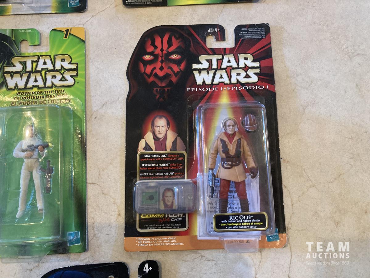 1998 Hasbro Rie Olie w/ helment, naboo blaster. 1996 Star wars C-P30 2-1/2 inch metal die cast. 1998 Anakin Skywalker w/ lightsaber, 1996 AT-ST driver. 2000 Bespin Escape.