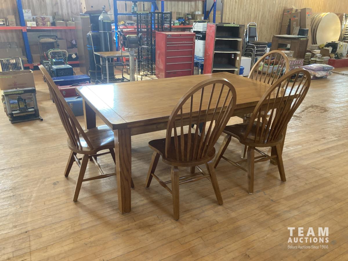 72 X 44 inch table w/ 2 18 inch extensions, 4 chairs, bench seat