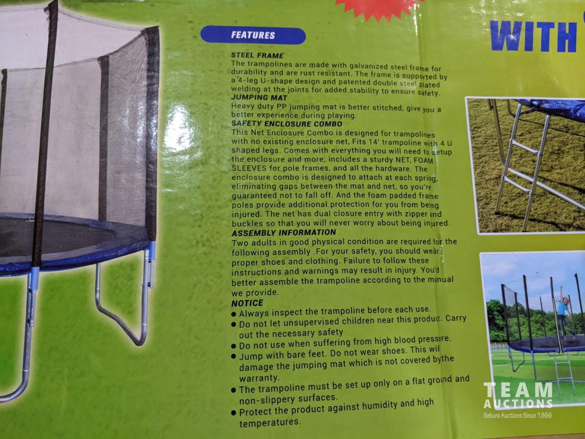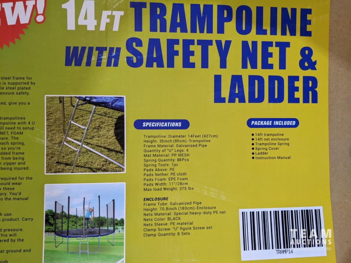 1185 14 Ft Trampoline with Safety Net and Ladder (Unused)
