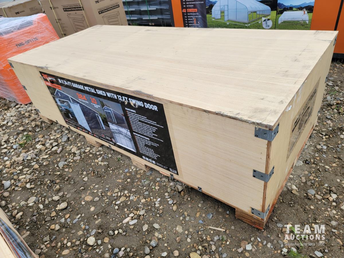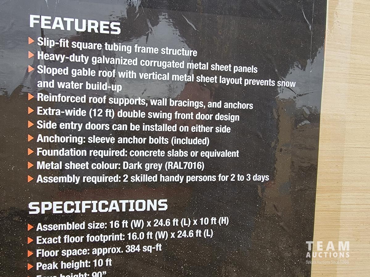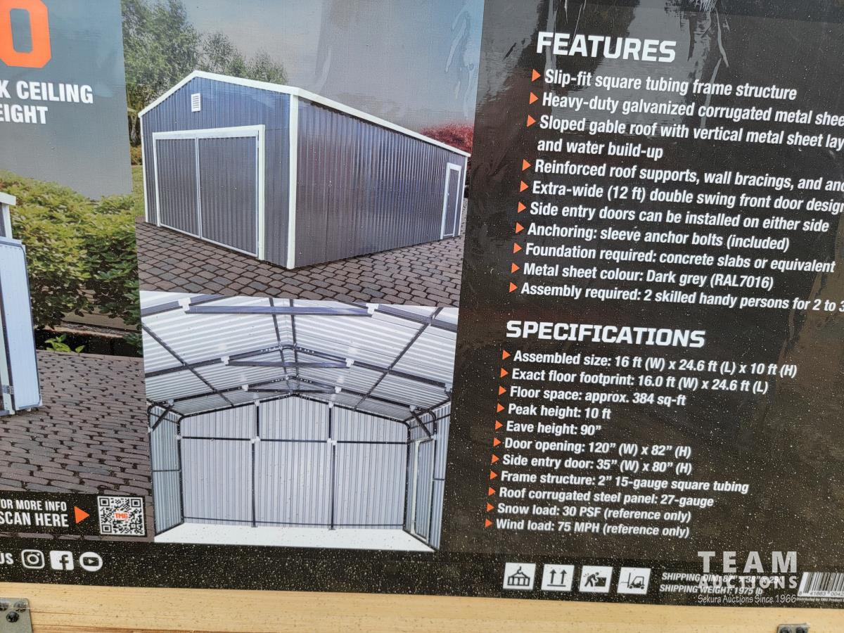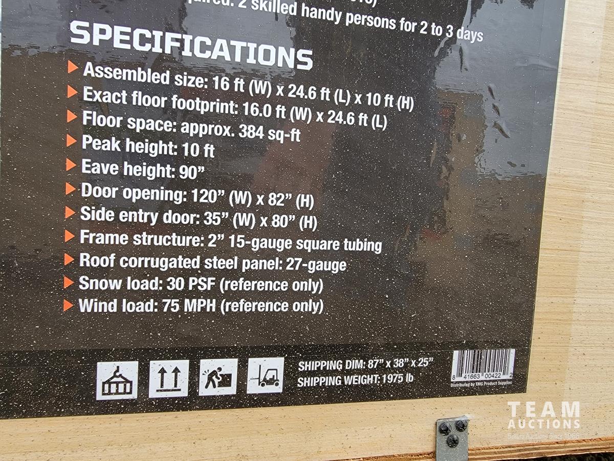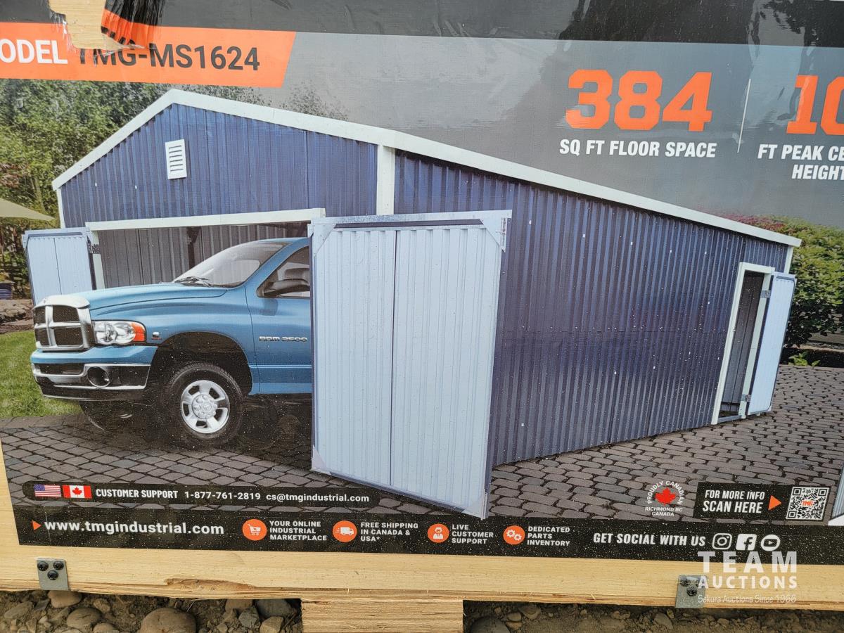 1741 TMG Industrial TMG-MS1624 16 Ft X 24 Ft Metal Garage Shed with Double Front Doors (Unused)