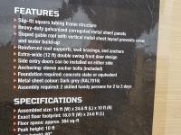 10 ft peak height, side entry door, 384 sq-ft floor space