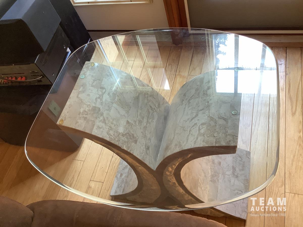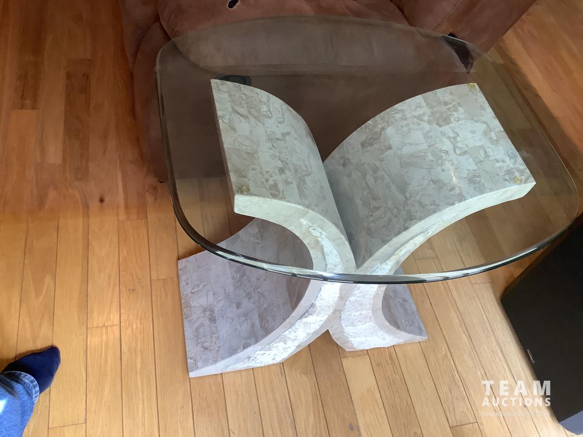 1928 4 Piece Decorative Set Made of Concrete and a Glass Top