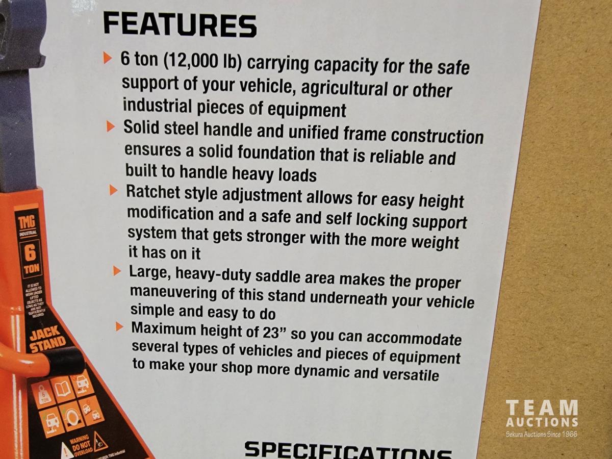1049 TMG Industrial TMG-AJS06 6 Ton Jack Stands (Unused)
