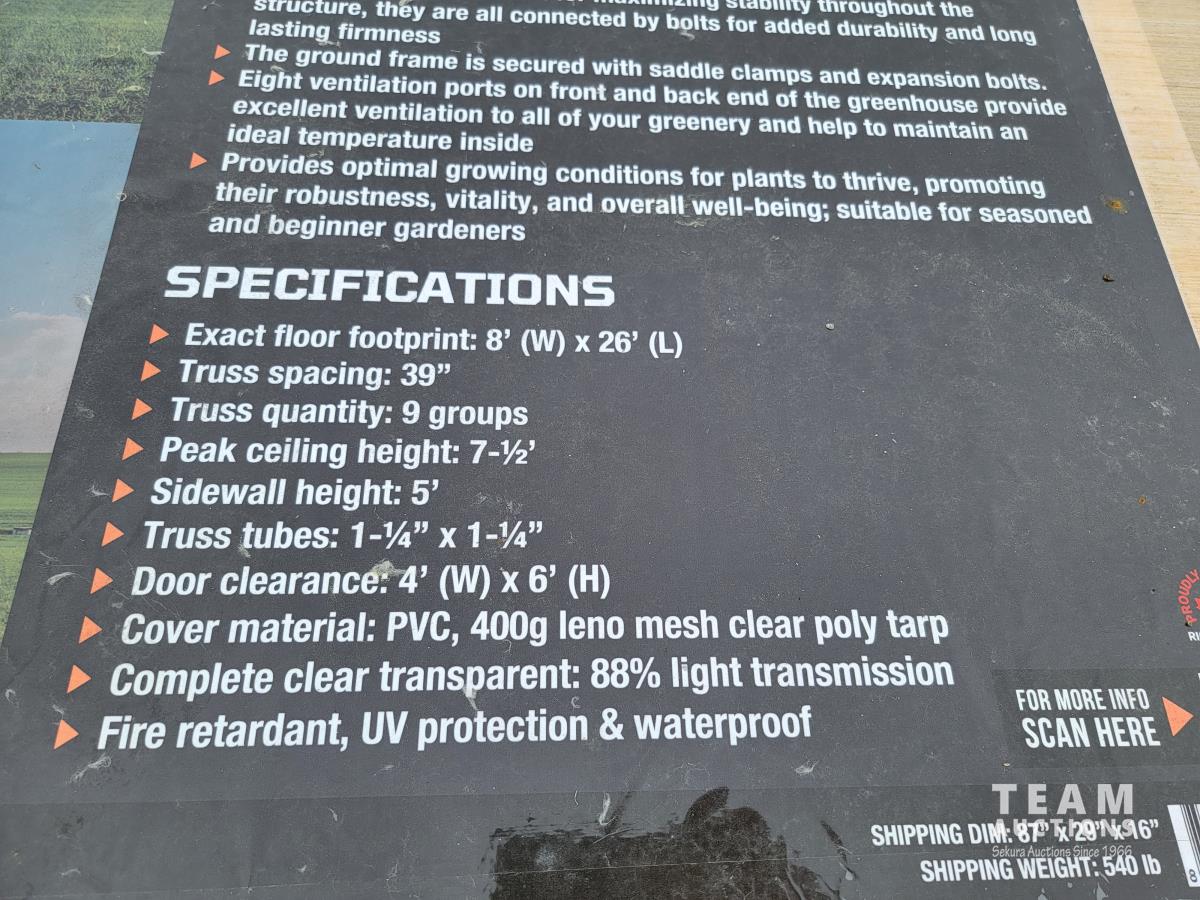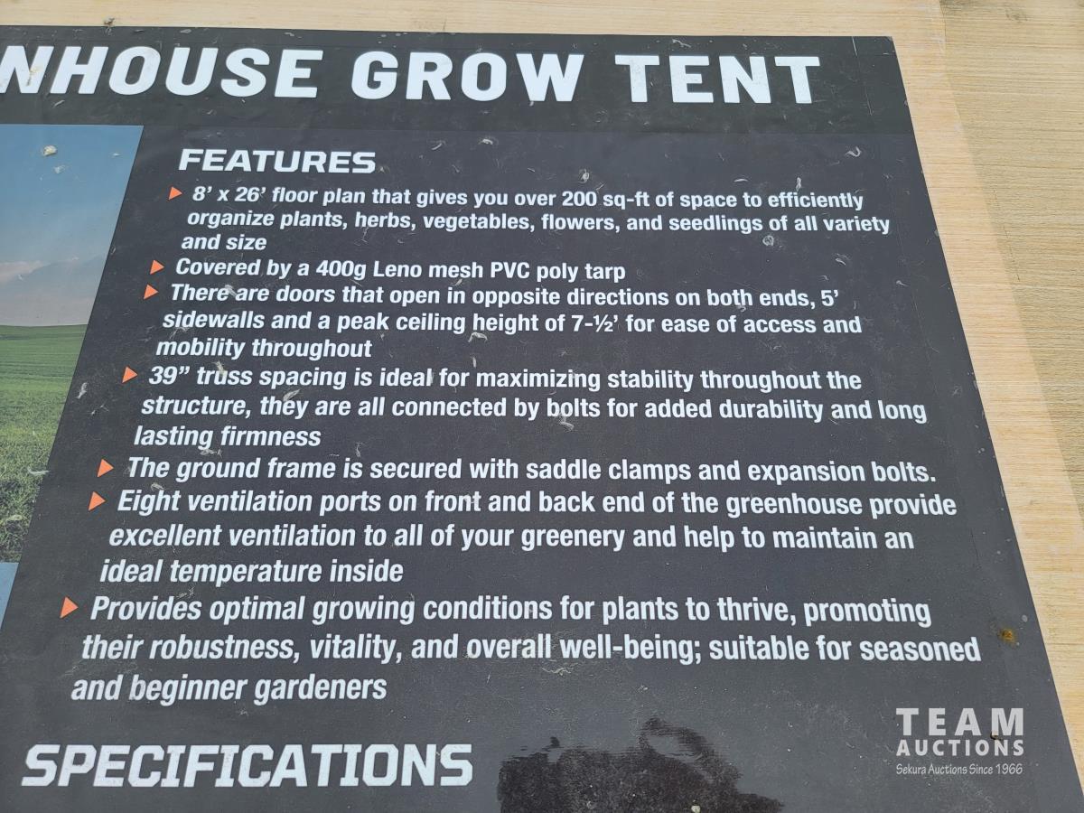1734 TMG Industrial TMG-GH826 8 Ft X 26 Ft Greenhouse Grow Tent (Unused)