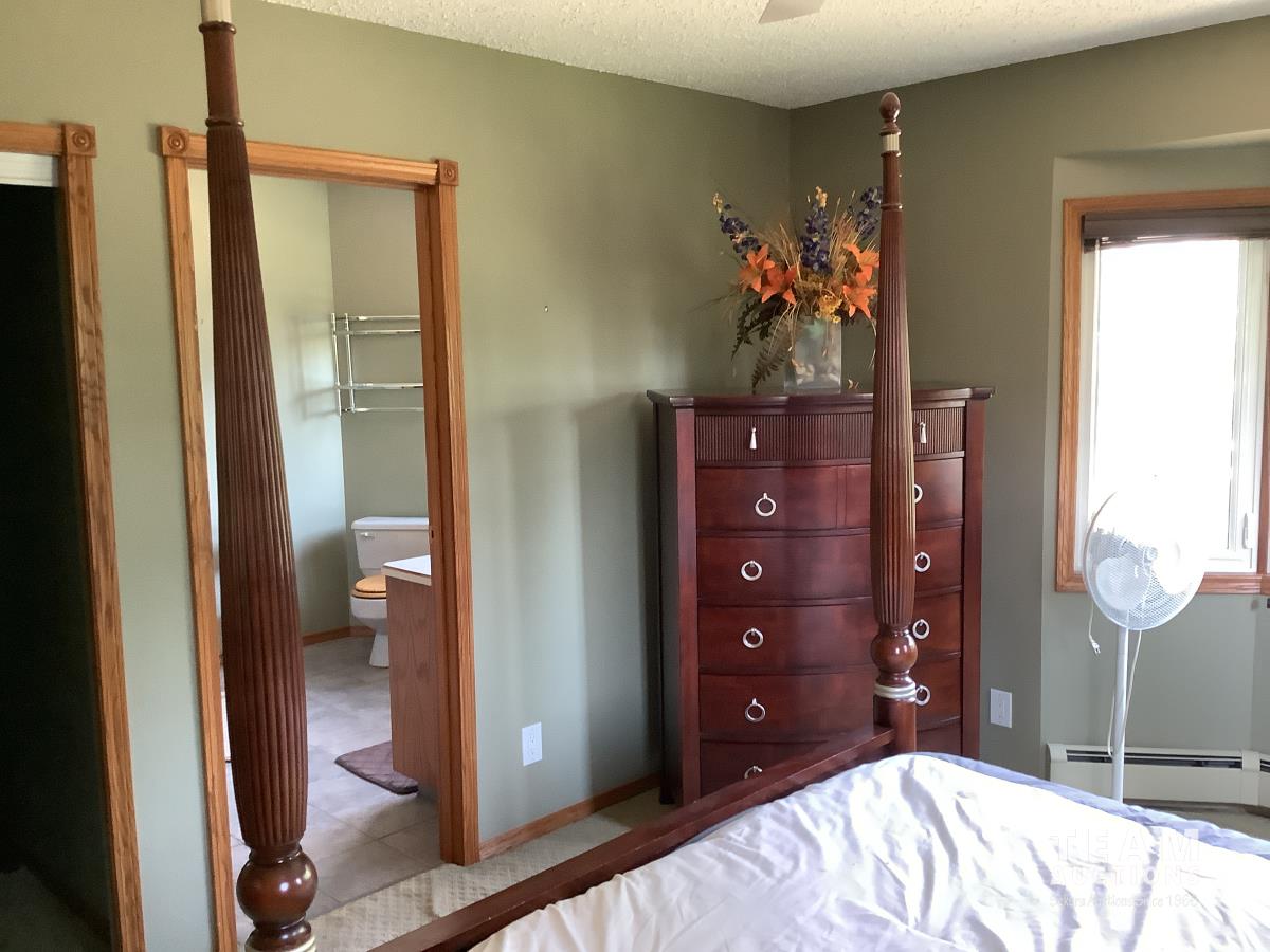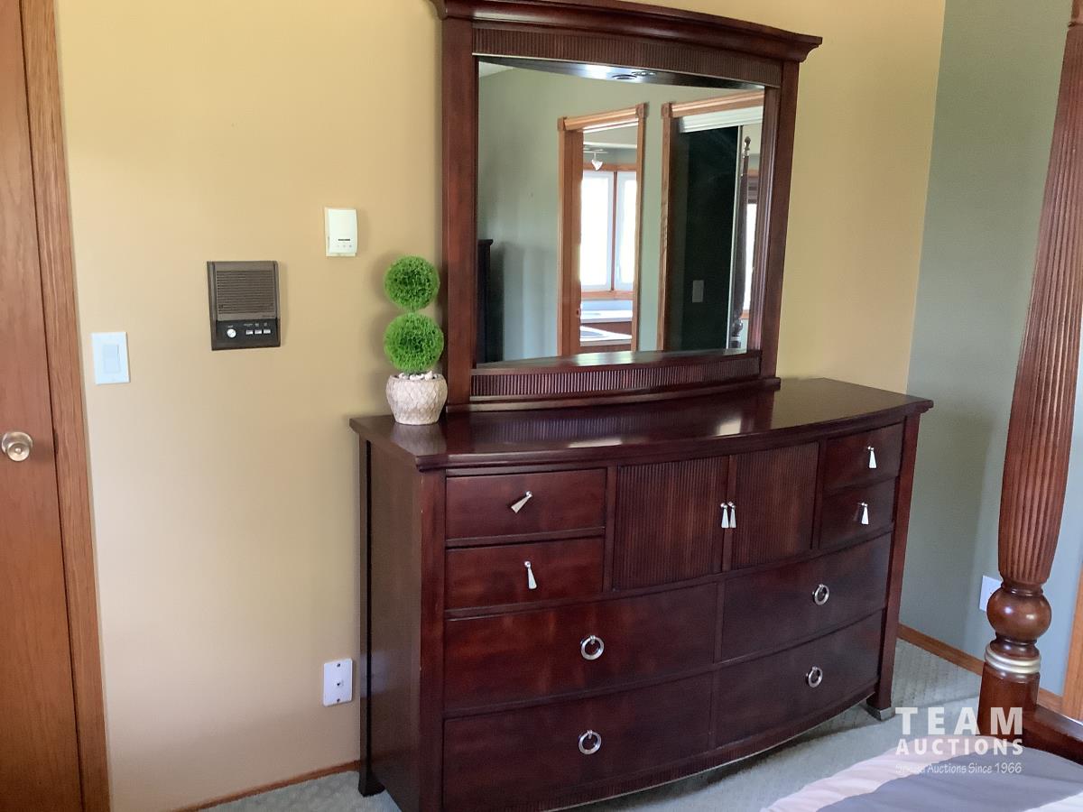 Bed, head and footboard, nightstand, fan, dresser and mirror and standup dresser