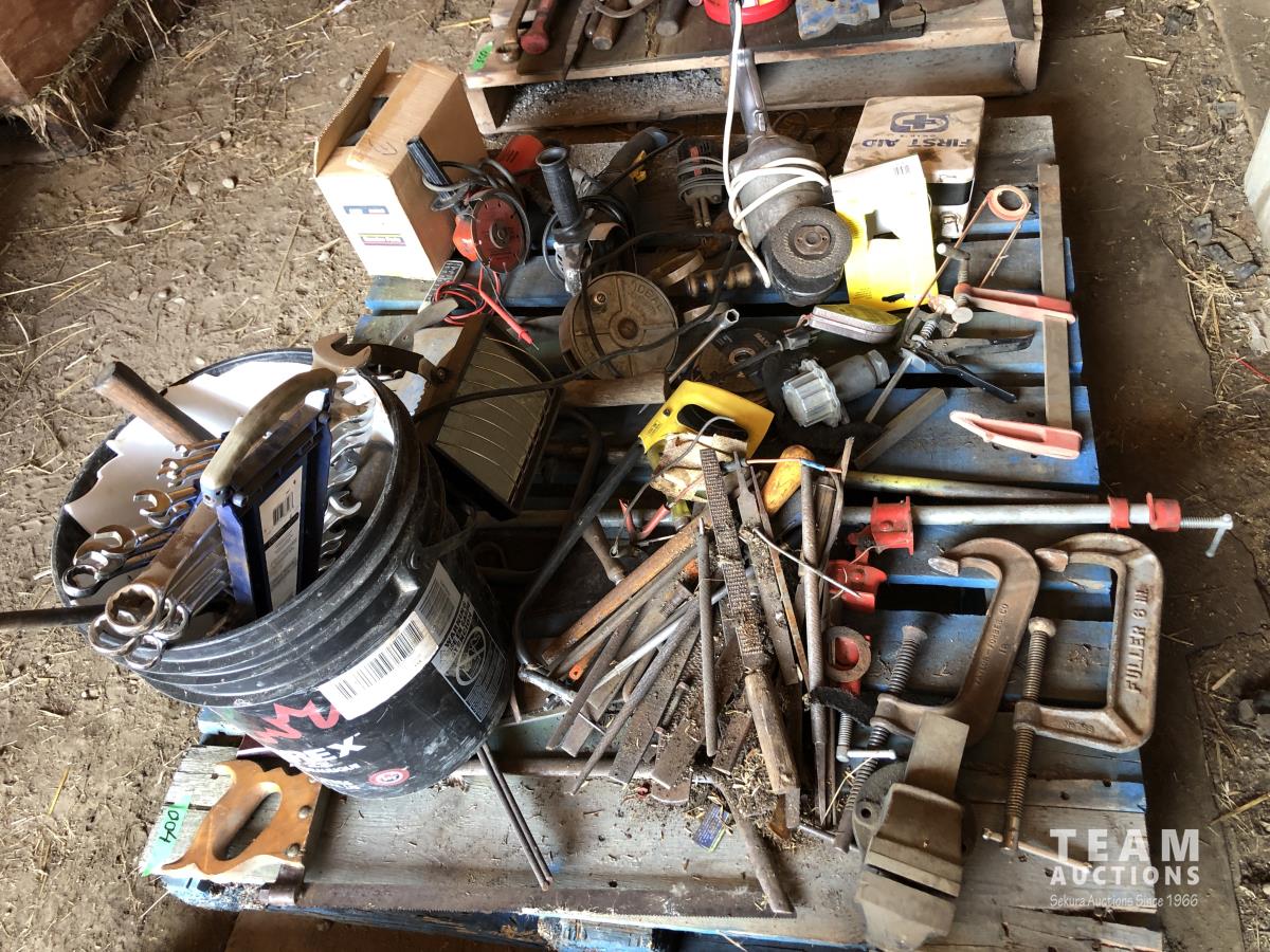 hand saws, clamps, vise, wrenches and files