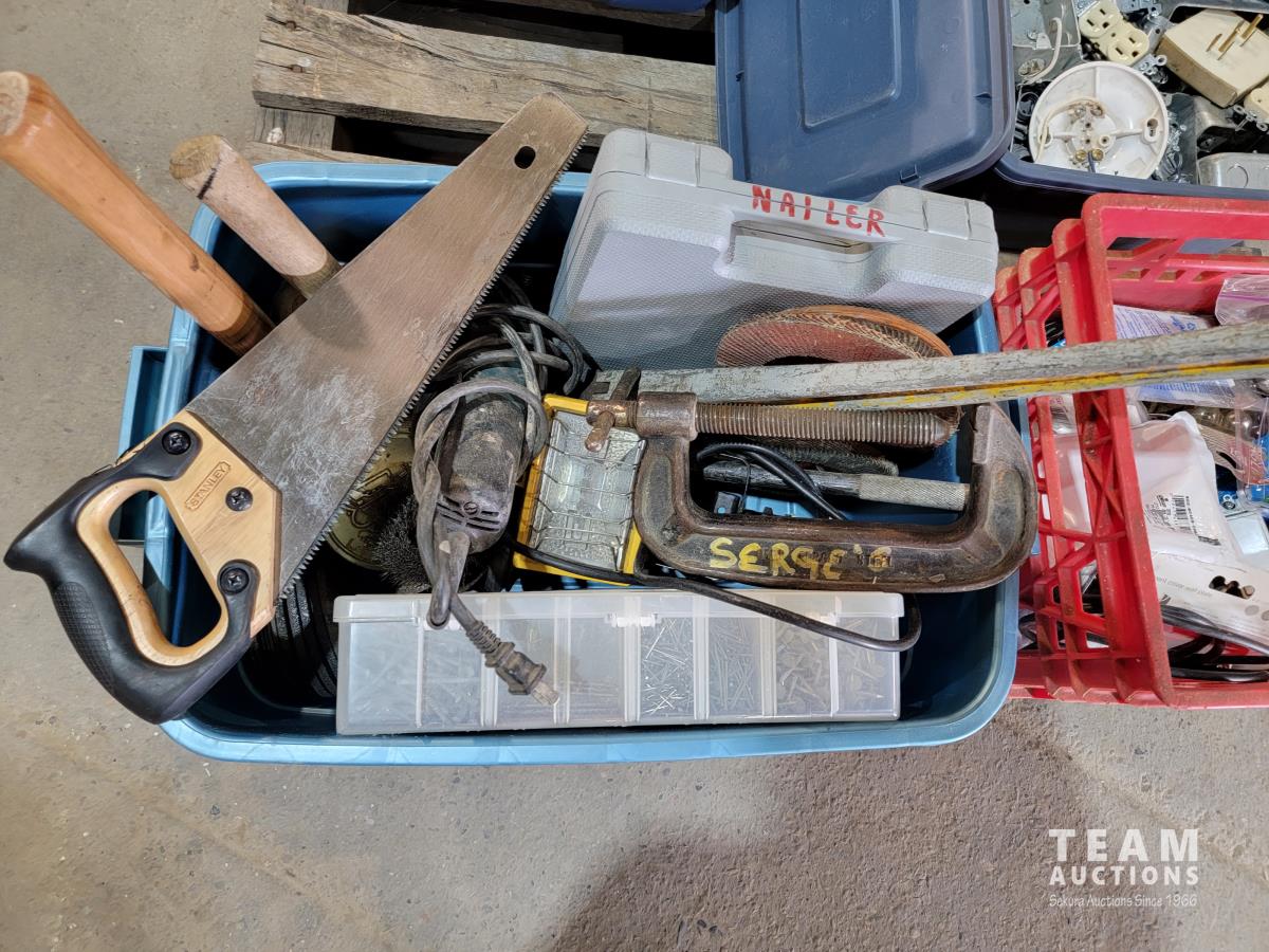 Electrical boxes, tools, plumbing items, nail gun