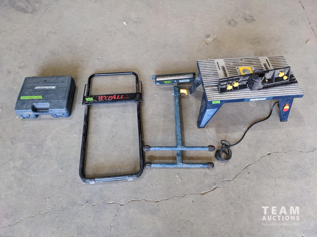 Mastercraft mortising attachment kit (incomplete), Wypall jumbo roll dispenser, Mastercraft roller stand, Mastercraft router table