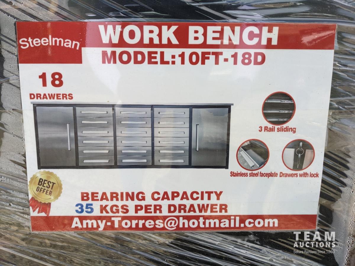 18 drawers, 2 cabinets, locks, anti-slip liners, (3) rail sliders, stainless steel top